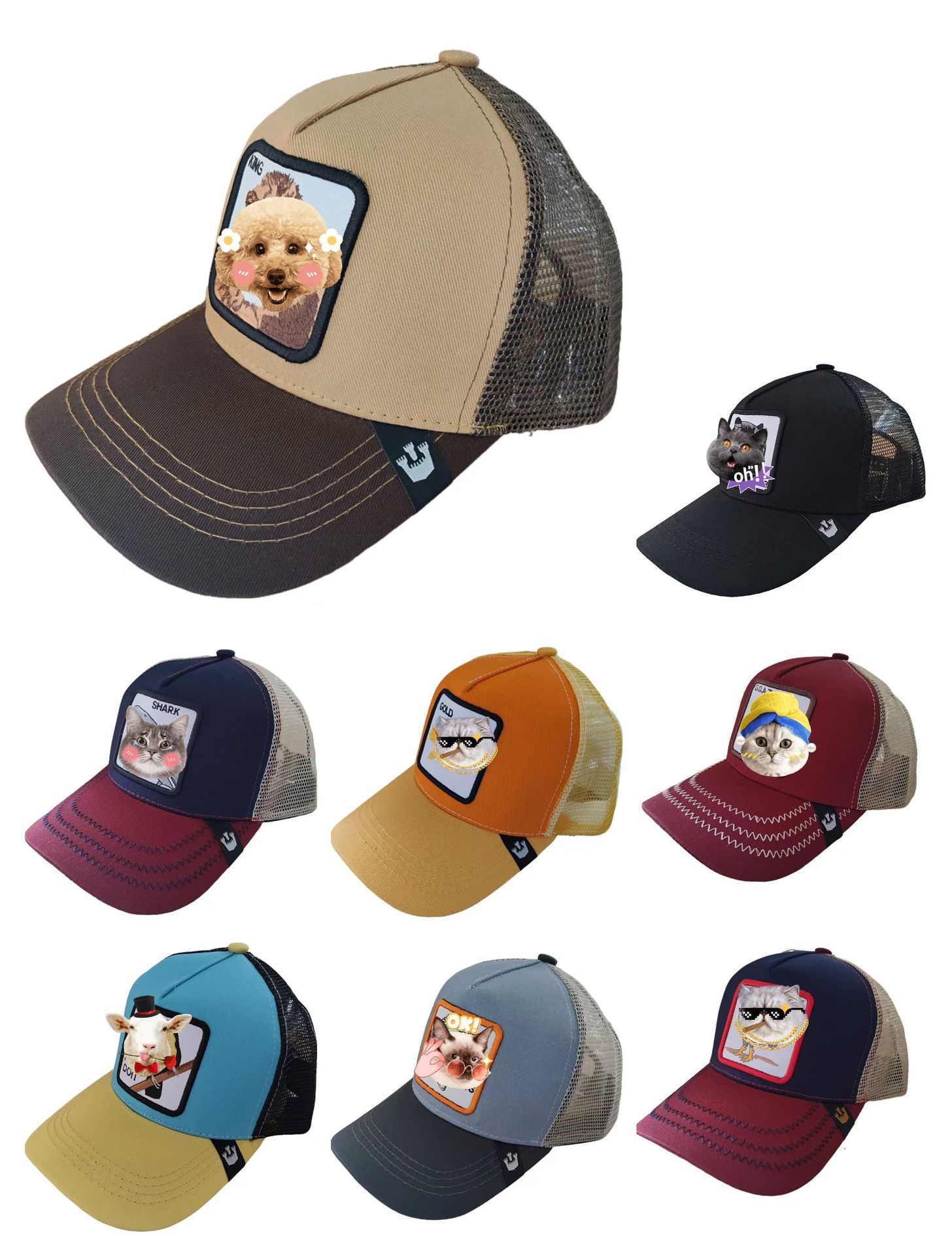 [국경 간 폭발] 동물 야구 모자 선 스크린 메쉬 자수 트럭 운전사 검은 표범 수탉 사자 모자스토어 가기