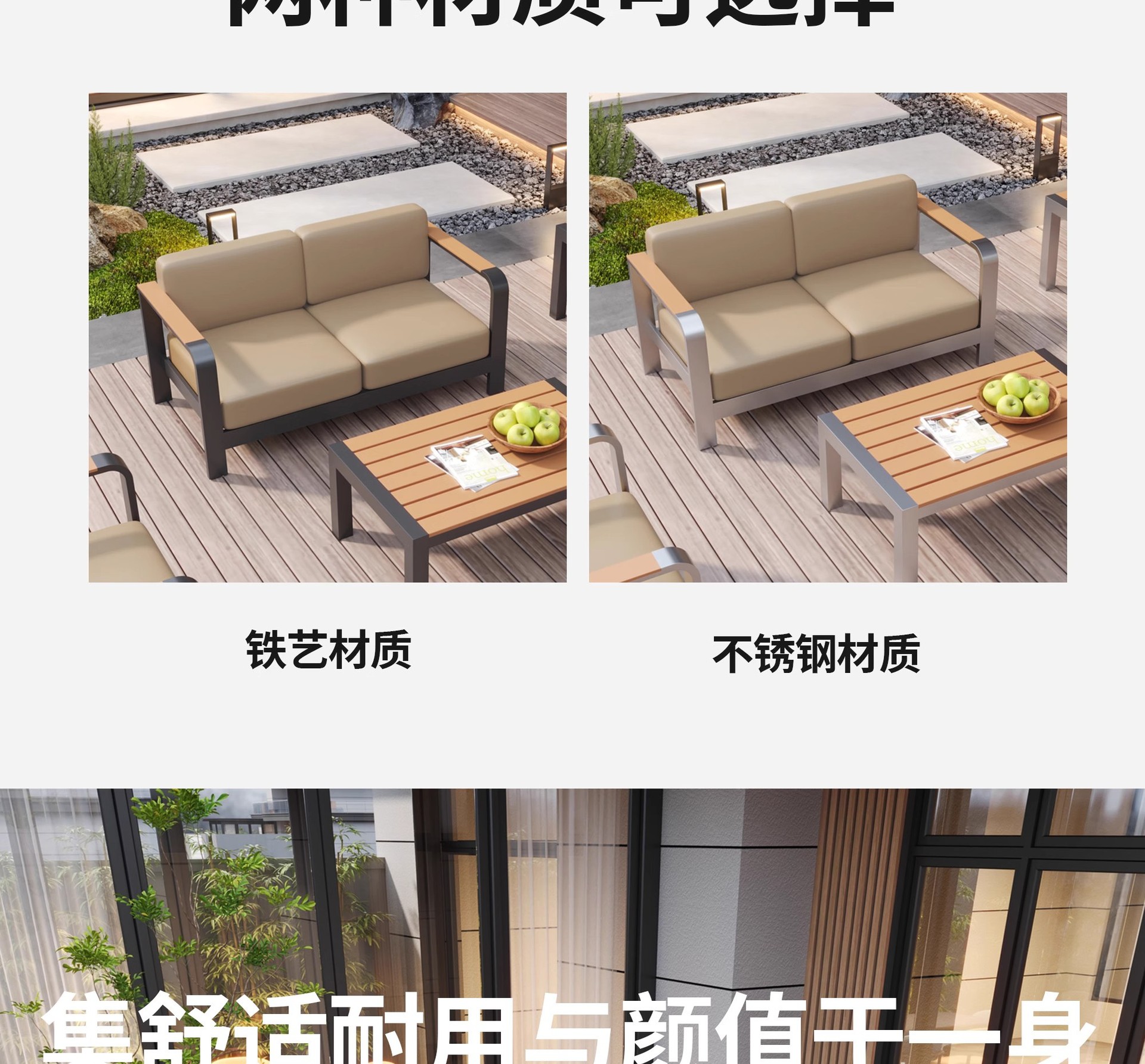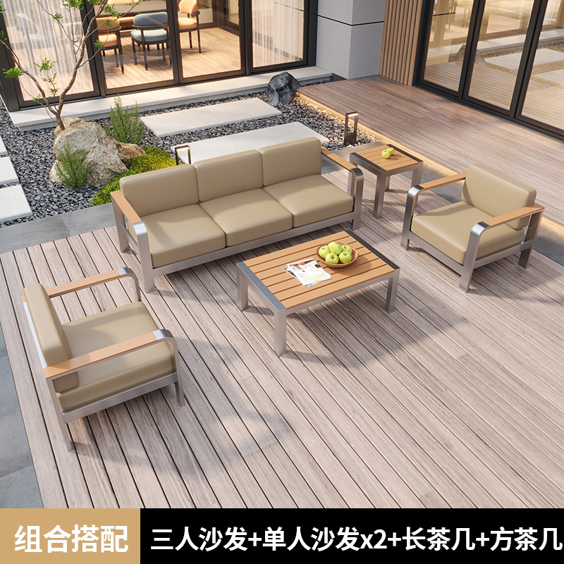 야외 소파 패션 레저 안뜰 정원 야외 레저 지역 빌라 스테인레스 스틸 야외 소파 커피 테이블스토어 가기