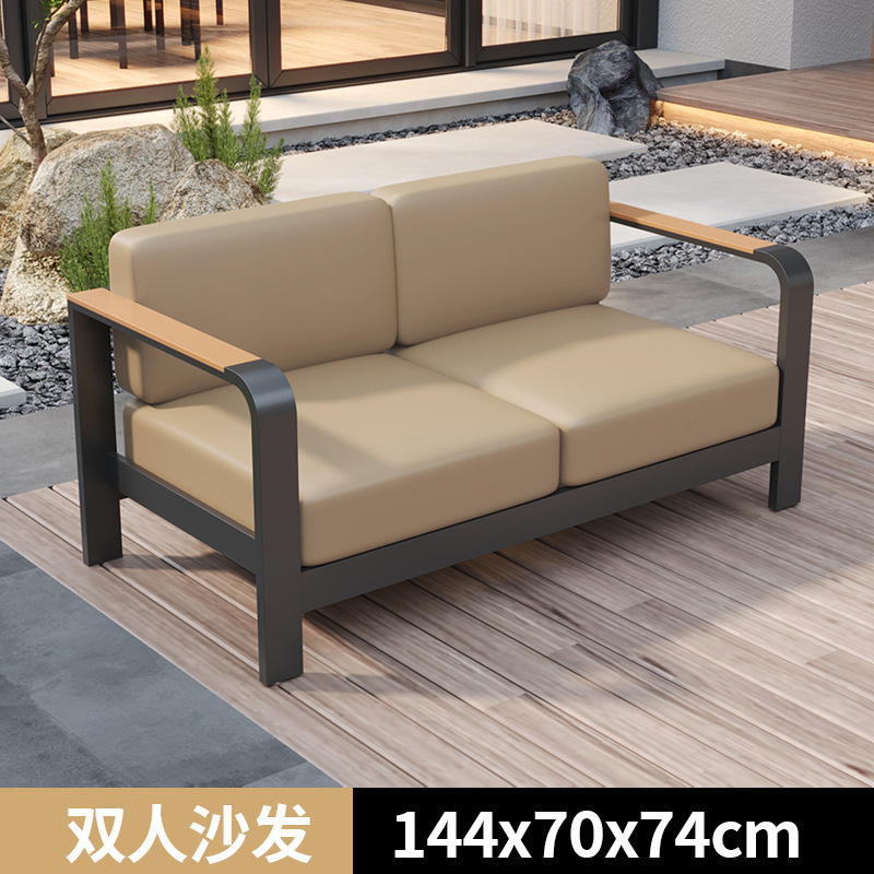 • 더블 소파 [블랙-아연도금 스틸-야외용 가죽]