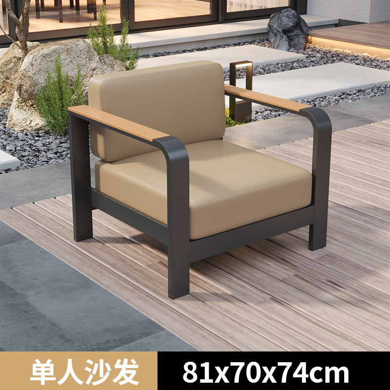 • 싱글 소파 [블랙-아연도금 스틸-야외용 가죽]