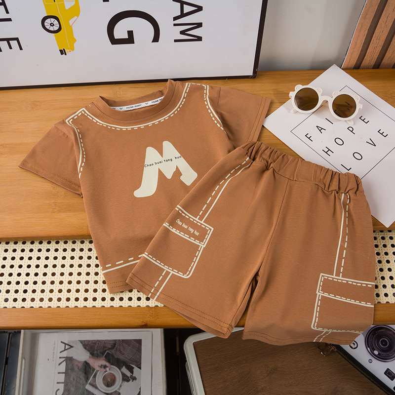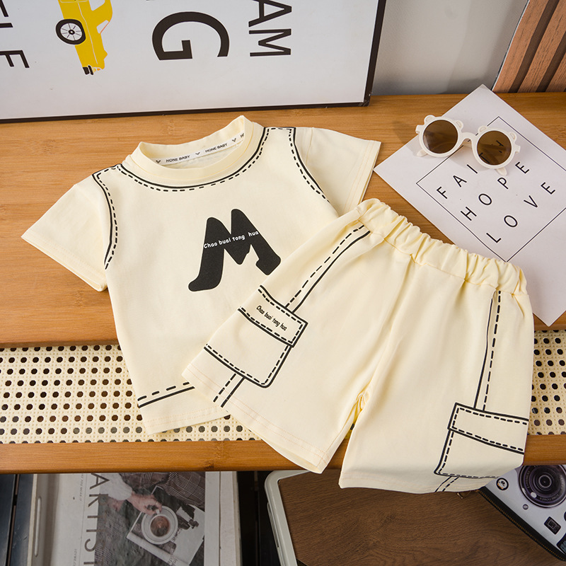 소년 여름 의류 세트 2025 새로운 아기 캐주얼 의류 1-3 세 5 소년 여름 반팔 투피스 세트