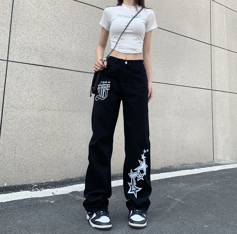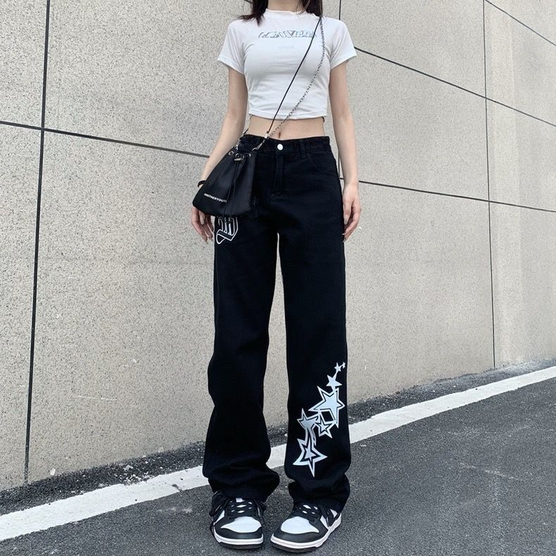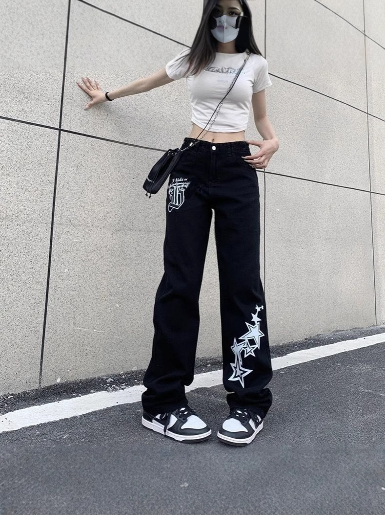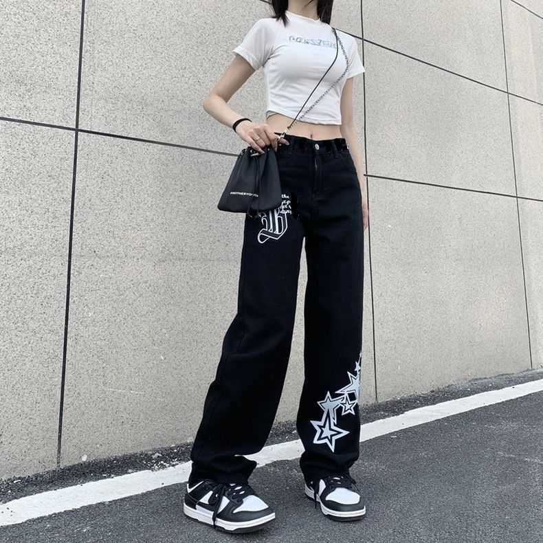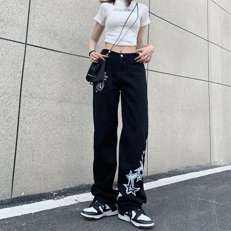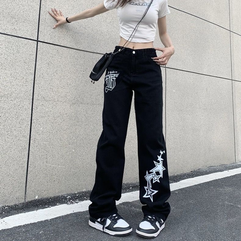 2025 새로운 미국 스타일 청바지 여성 트렌디 한 하라주쿠 높은 허리 슬림 느슨한 직선 다리 넓은 다리 캐주얼 바지