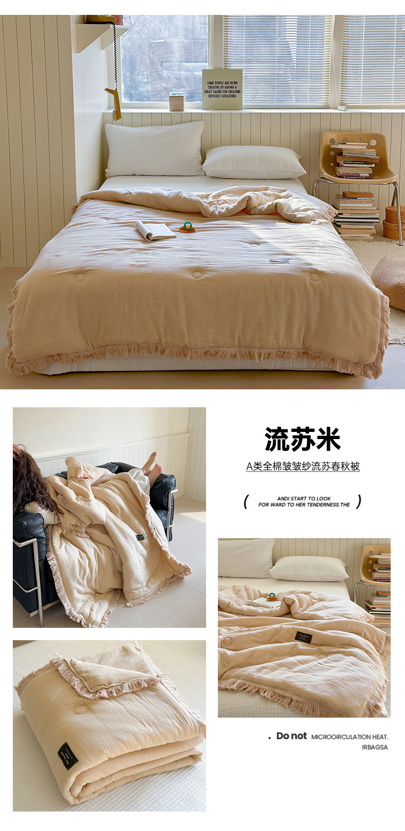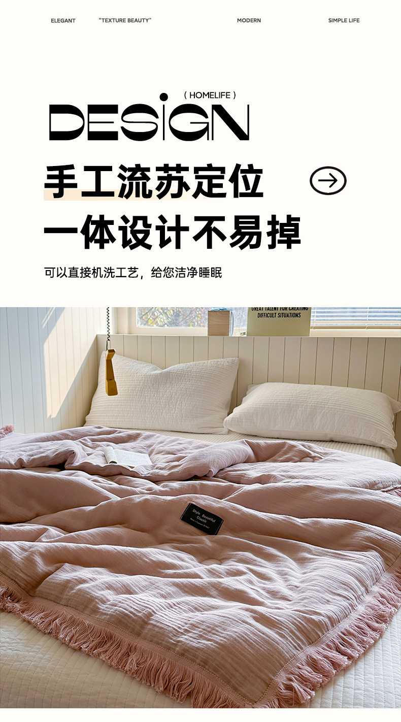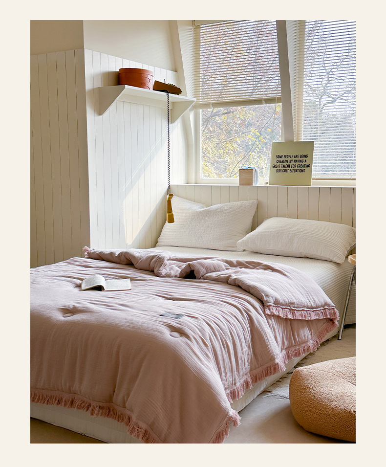 • A급 주름 거즈 이불 태슬 라이스