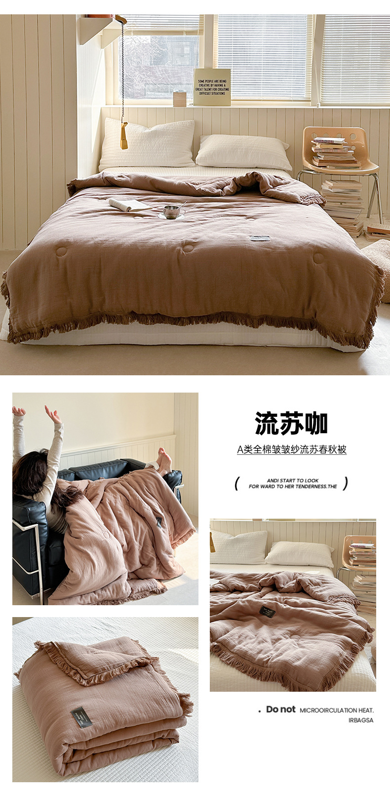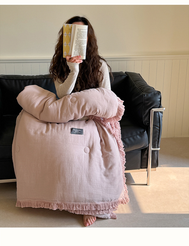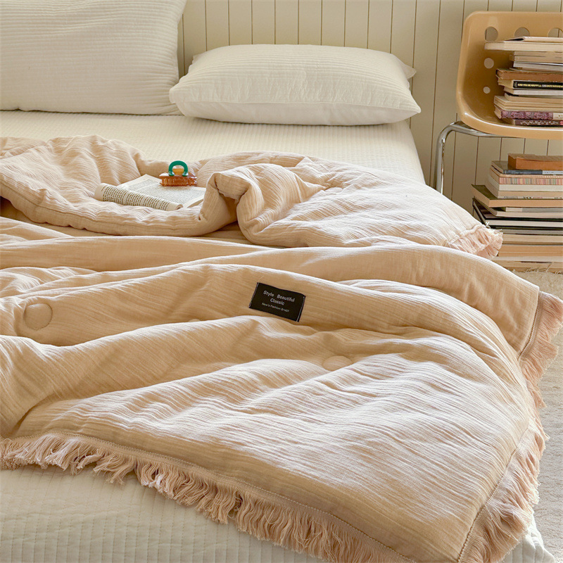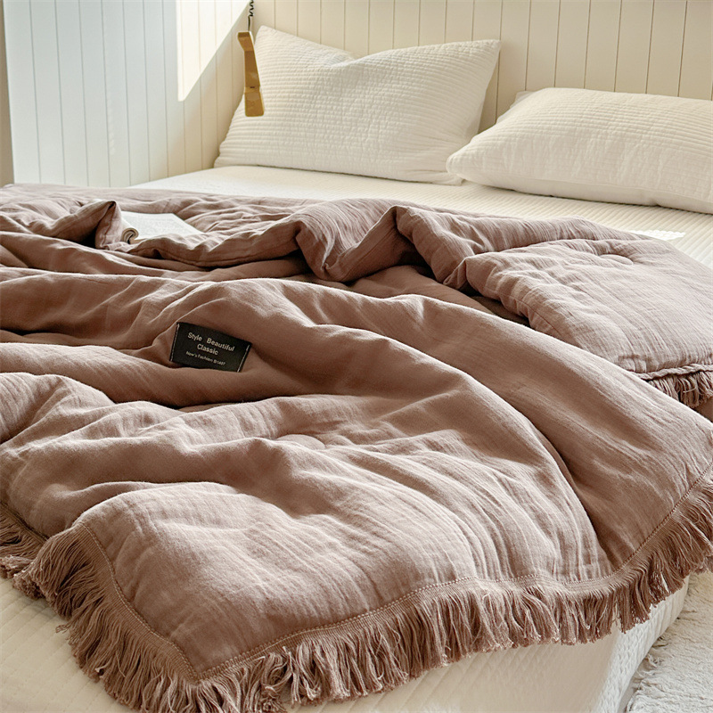 • A급 주름 거즈 이불 태슬 커피