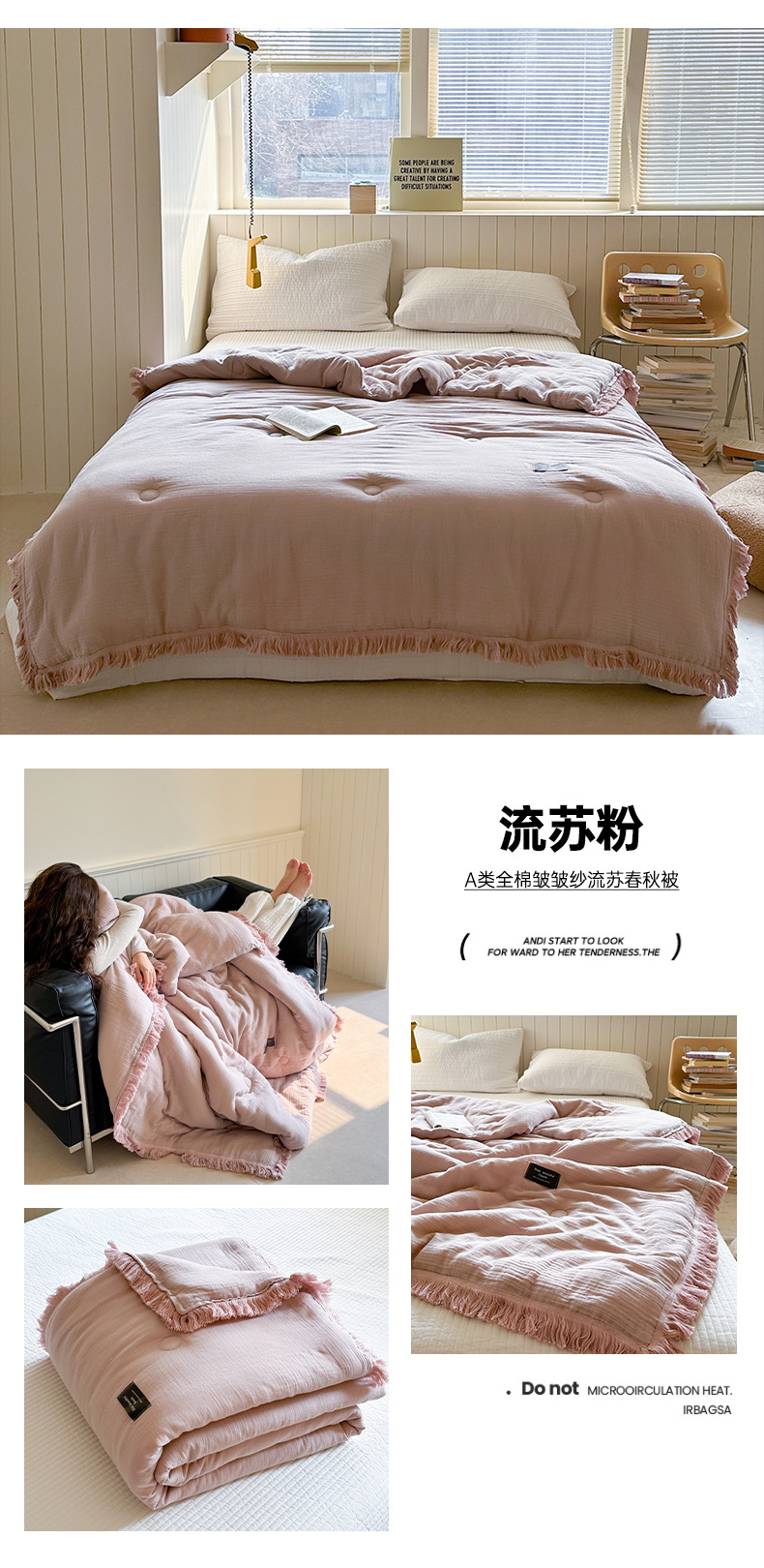• A급 주름 거즈 이불 태슬 파우더
