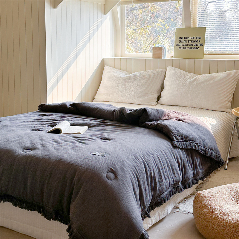 • A급 주름 거즈 이불 - 태슬 그레이
