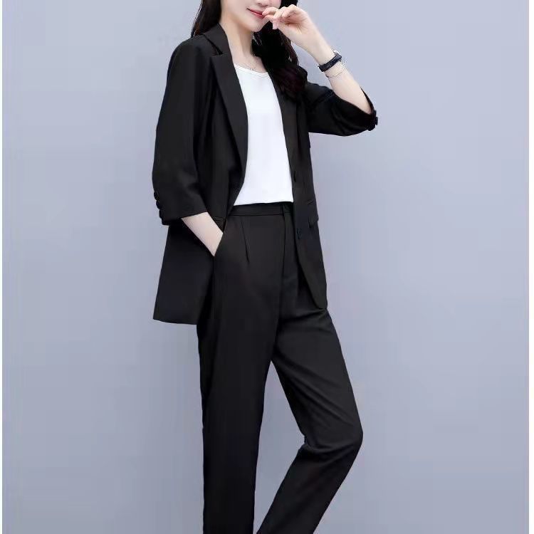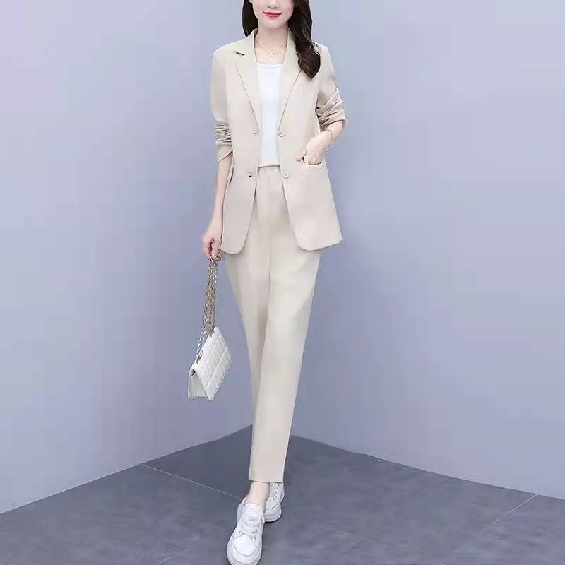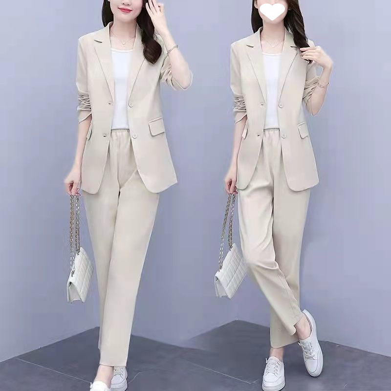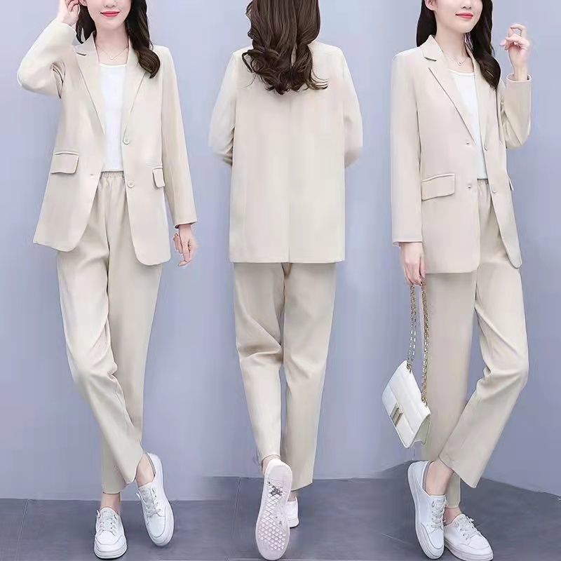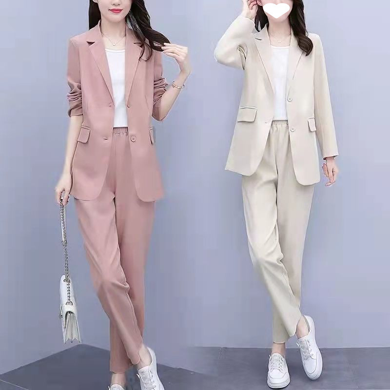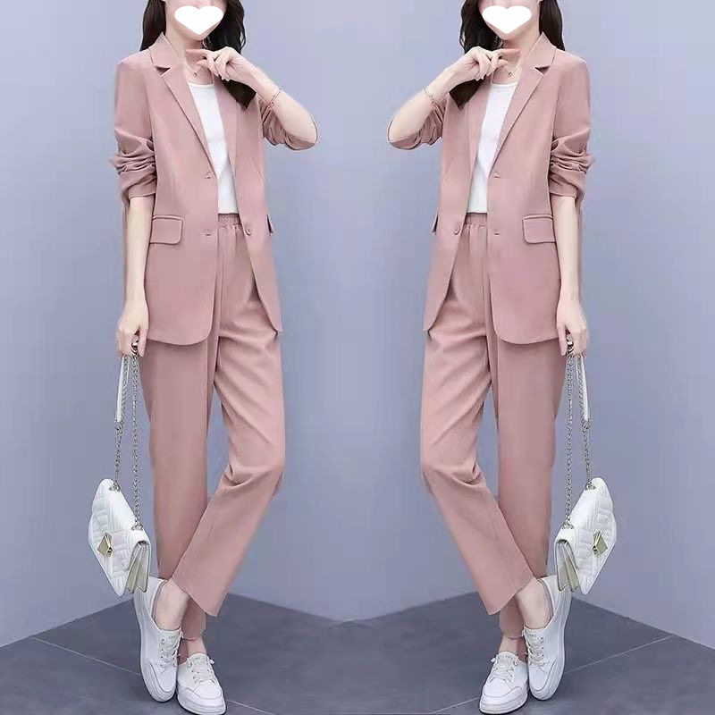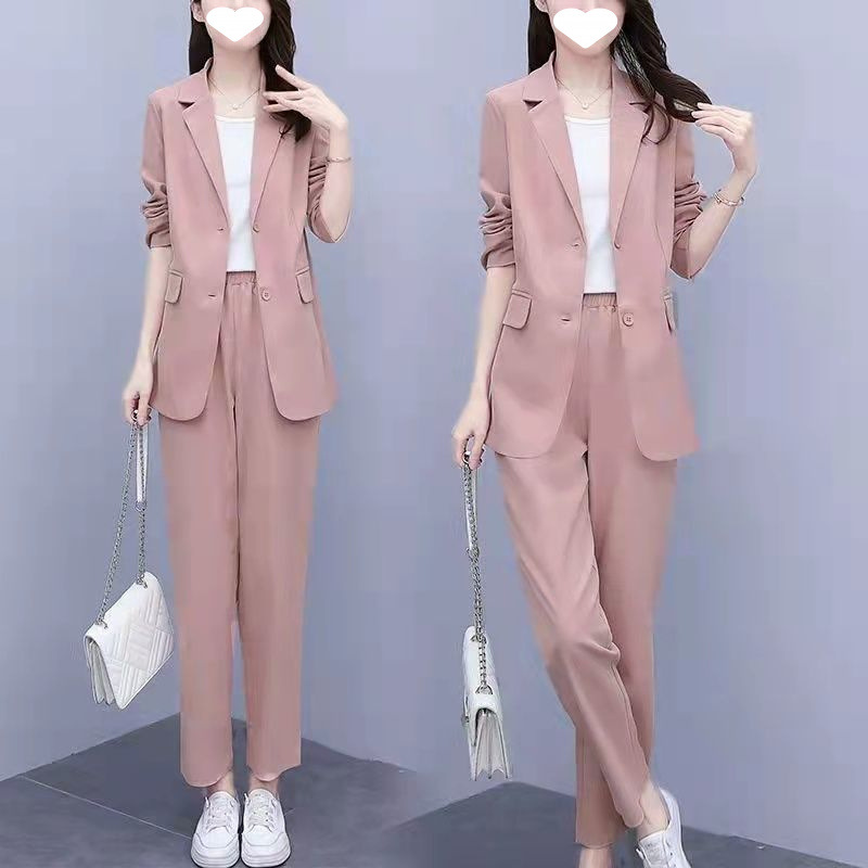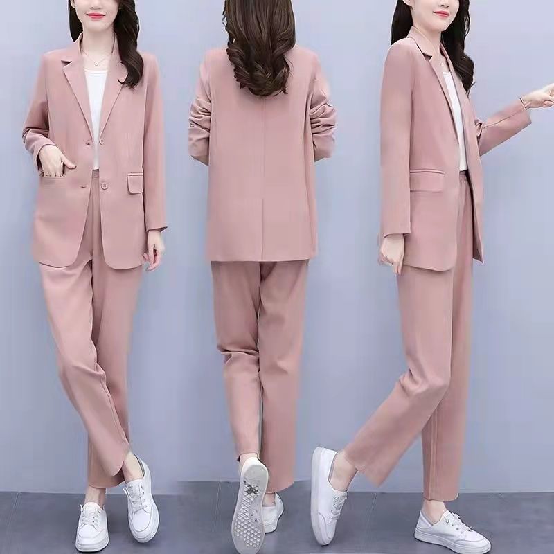 플러스 사이즈 여성의 약간의 뚱뚱한 여동생 봄과 가을 새로운 세트 자켓 슬리밍 바지 기질 여신 팬 하이 엔드 투피스 세트스토어 가기