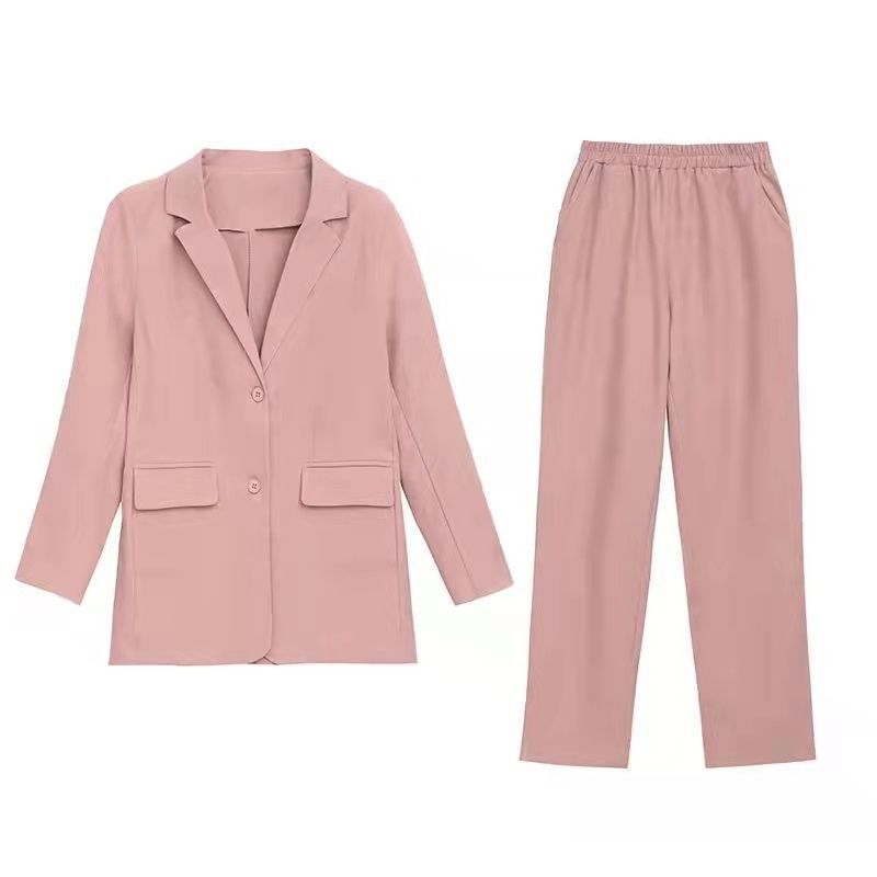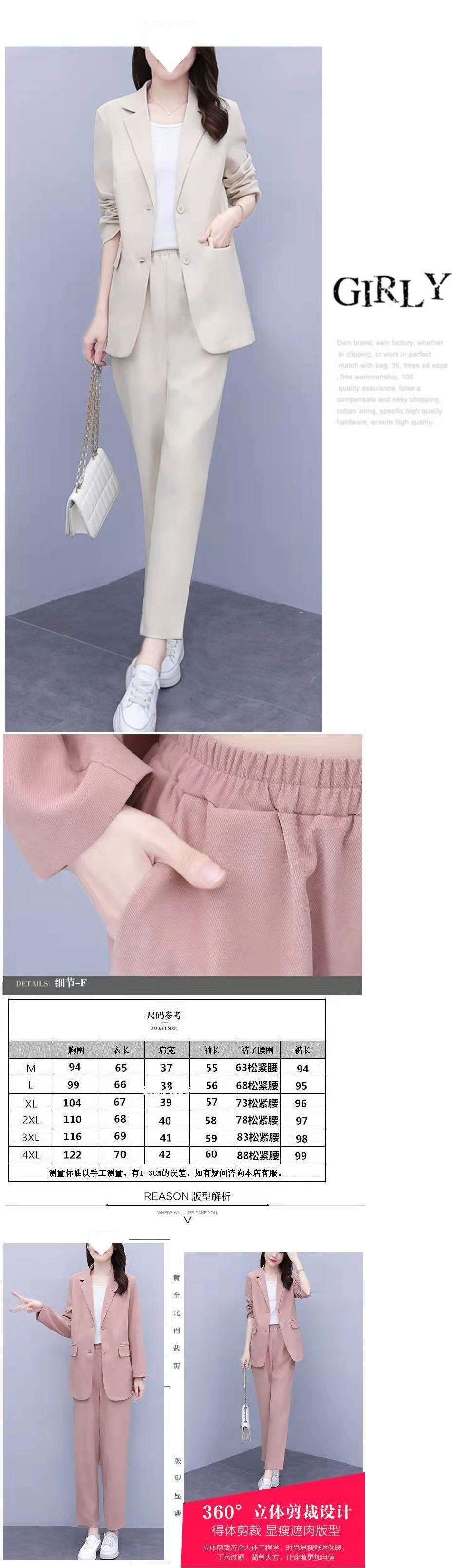 플러스 사이즈 여성의 약간의 뚱뚱한 여동생 봄과 가을 새로운 세트 자켓 슬리밍 바지 기질 여신 팬 하이 엔드 투피스 세트