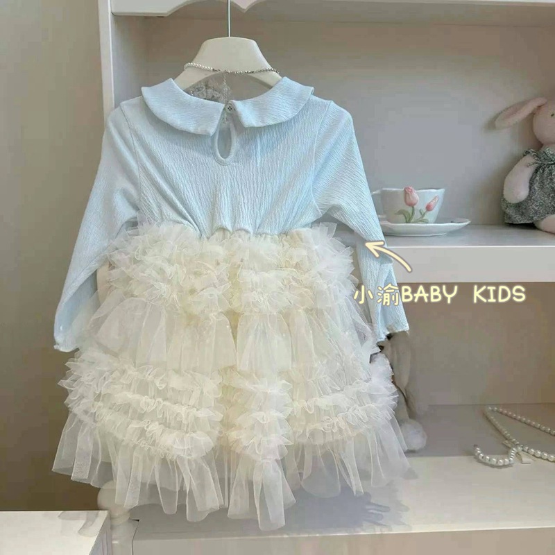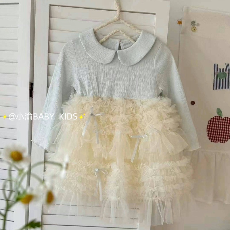 소녀 원피스 2025 봄 가을 새로운 한국 스타일 여성의 보물 공주 원피스 달콤한 인형 칼라 선박 스커트 생일 원피스스토어 가기