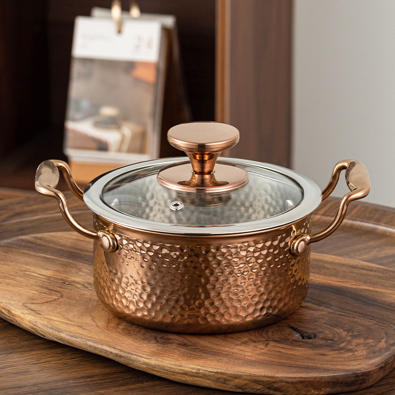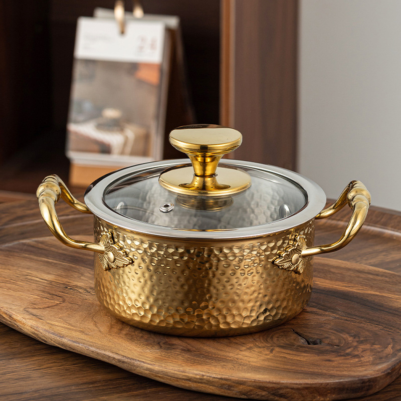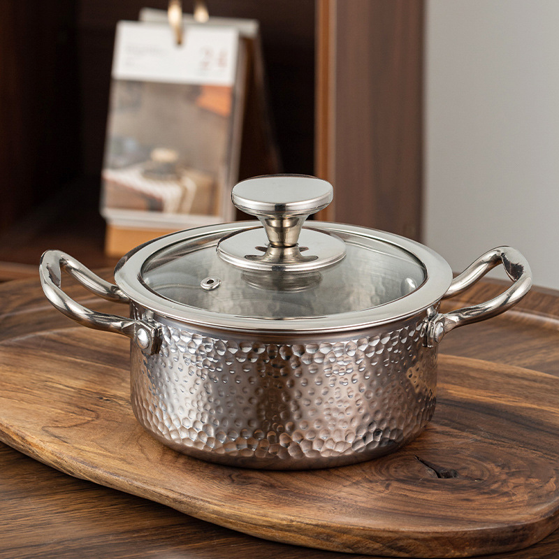 304 스테인레스 스틸 3 층 스틸 수프 포트 1 인 1 인 1 인 1 인 소형 화재 보일러 해머 패턴 상업용 호텔 셀프 서비스 샤브 포트