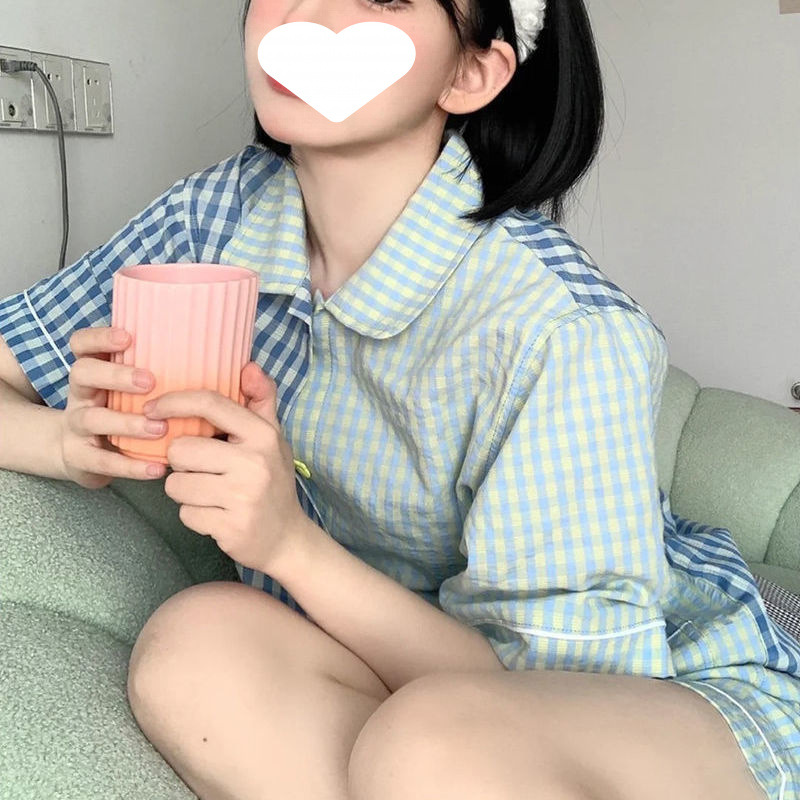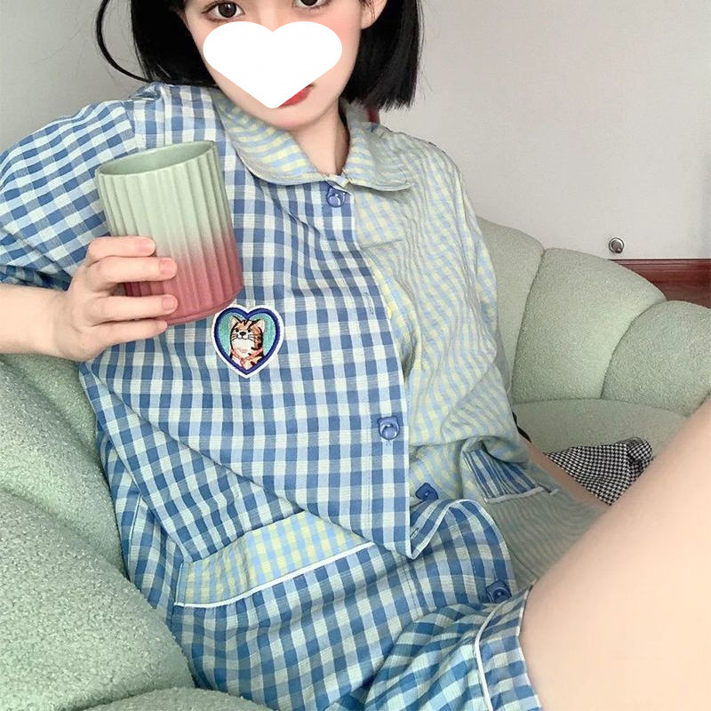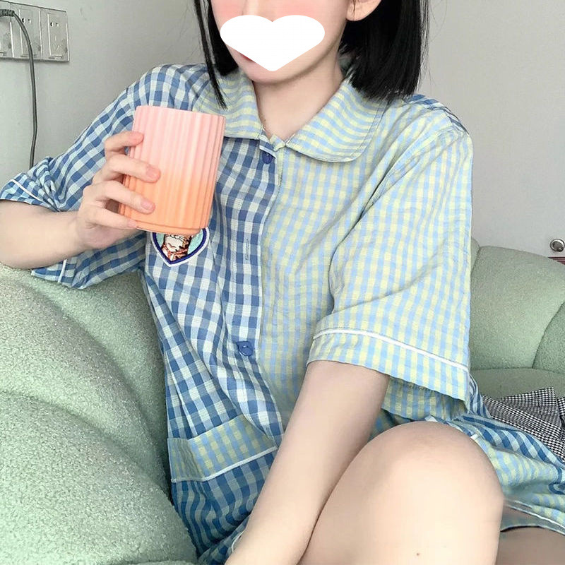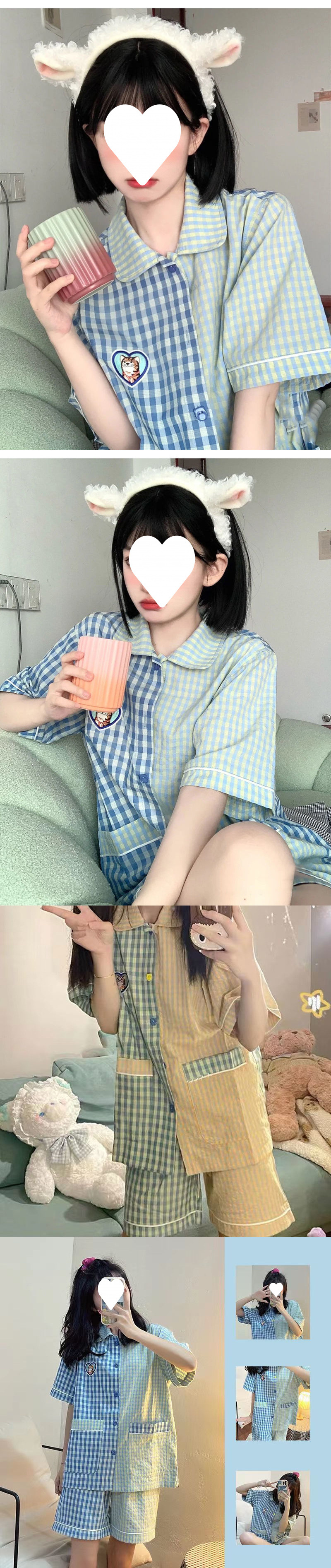 여름 새로운 격자 무늬 여성의 간단한 인터넷 인기 스타일 소녀의 캐주얼 홈 옷 바느질 홈 의류