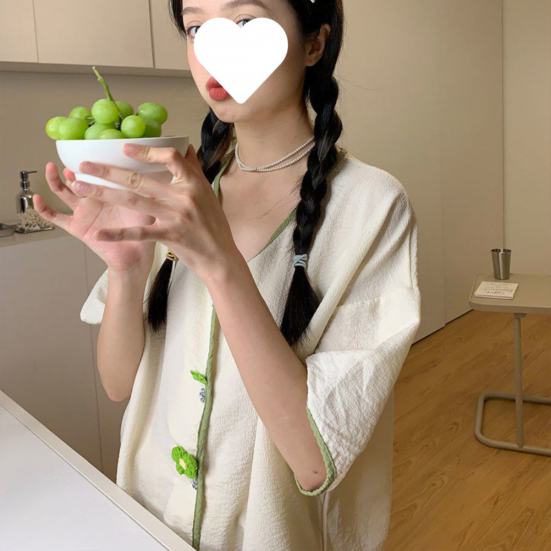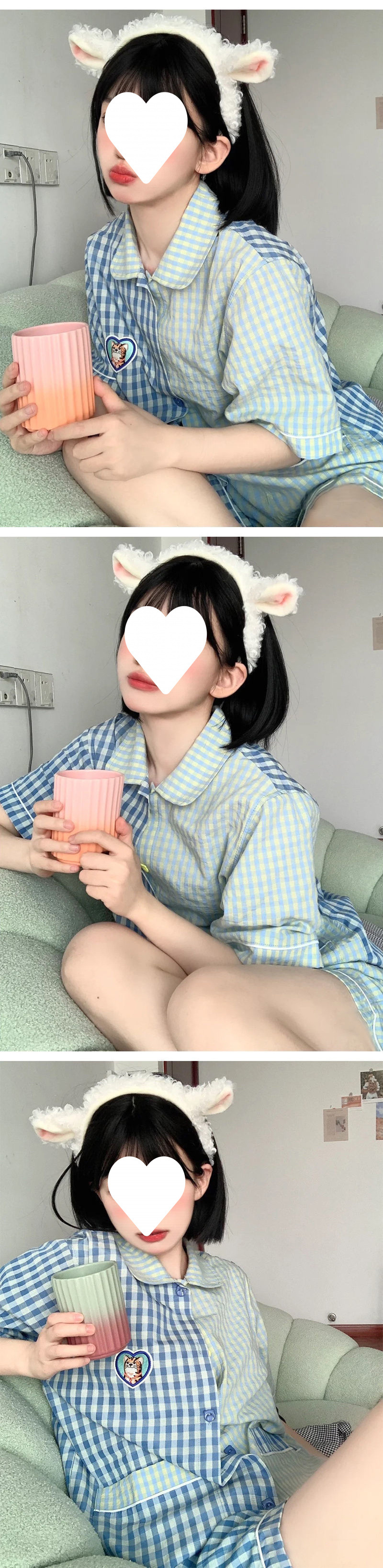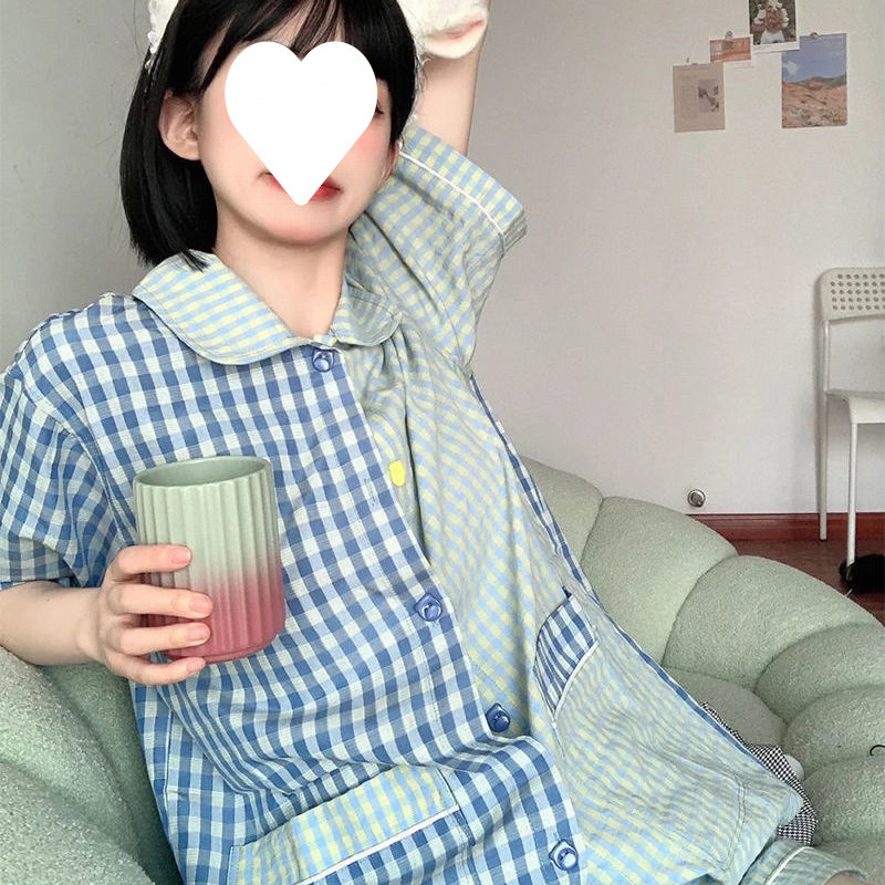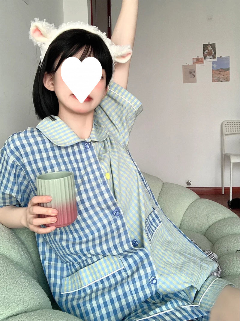 여름 새로운 격자 무늬 여성의 간단한 인터넷 인기 스타일 소녀의 캐주얼 홈 옷 바느질 홈 의류