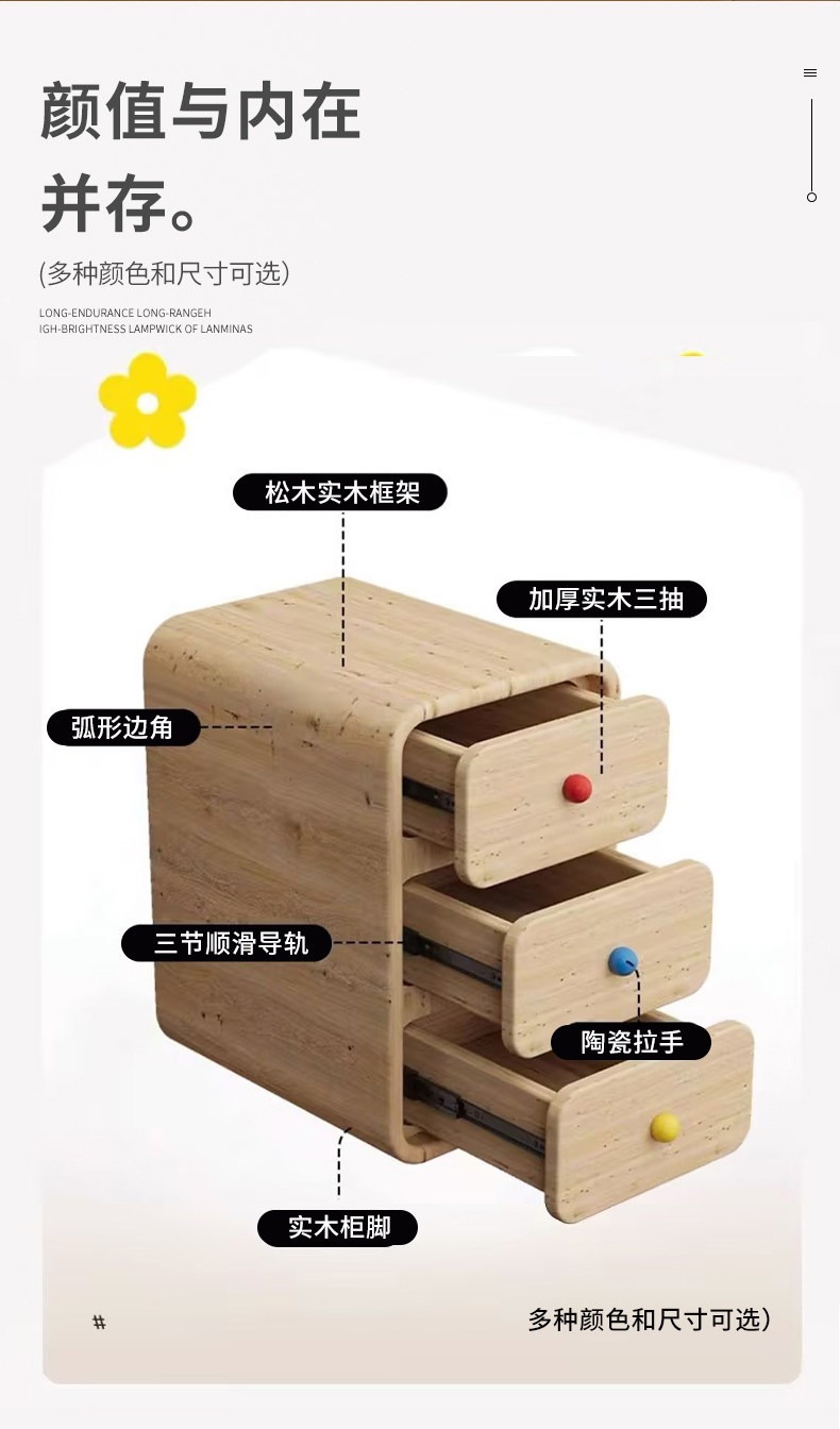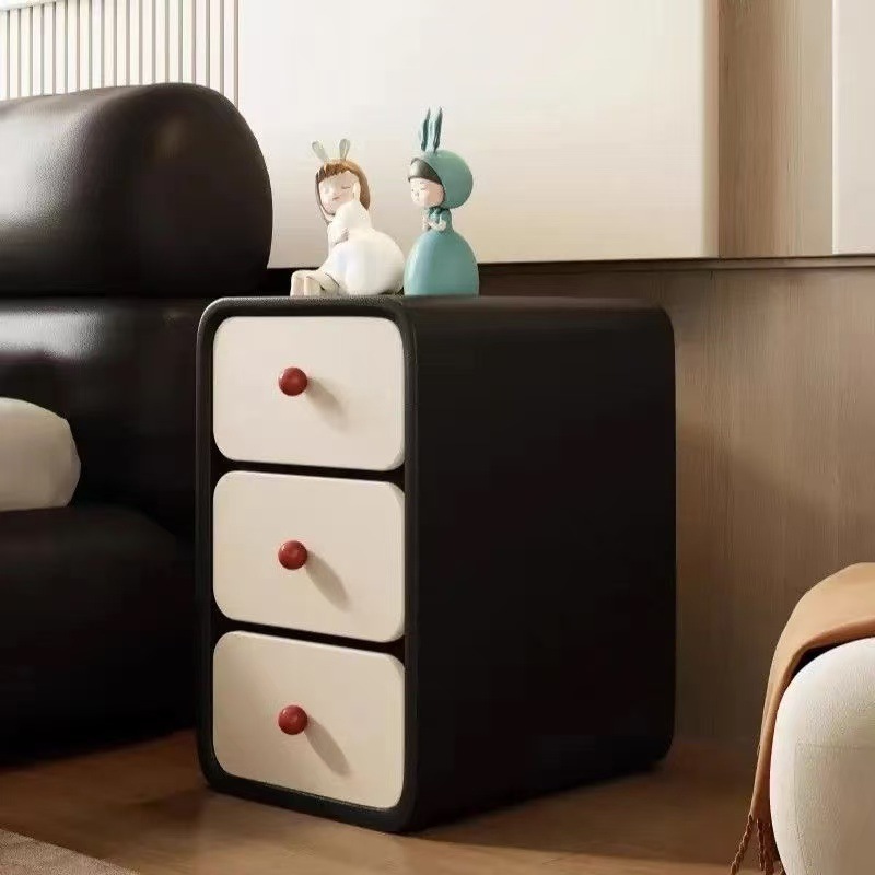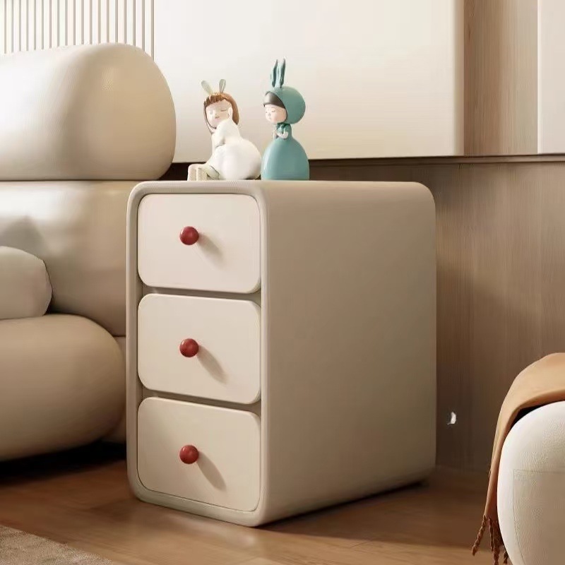작은 단단한 나무 침대 옆 테이블 간단한 부드러운 가방 크림 스타일 새로운 슈퍼 좁은 30cm 미니 침실 어린이 미니 캐비닛