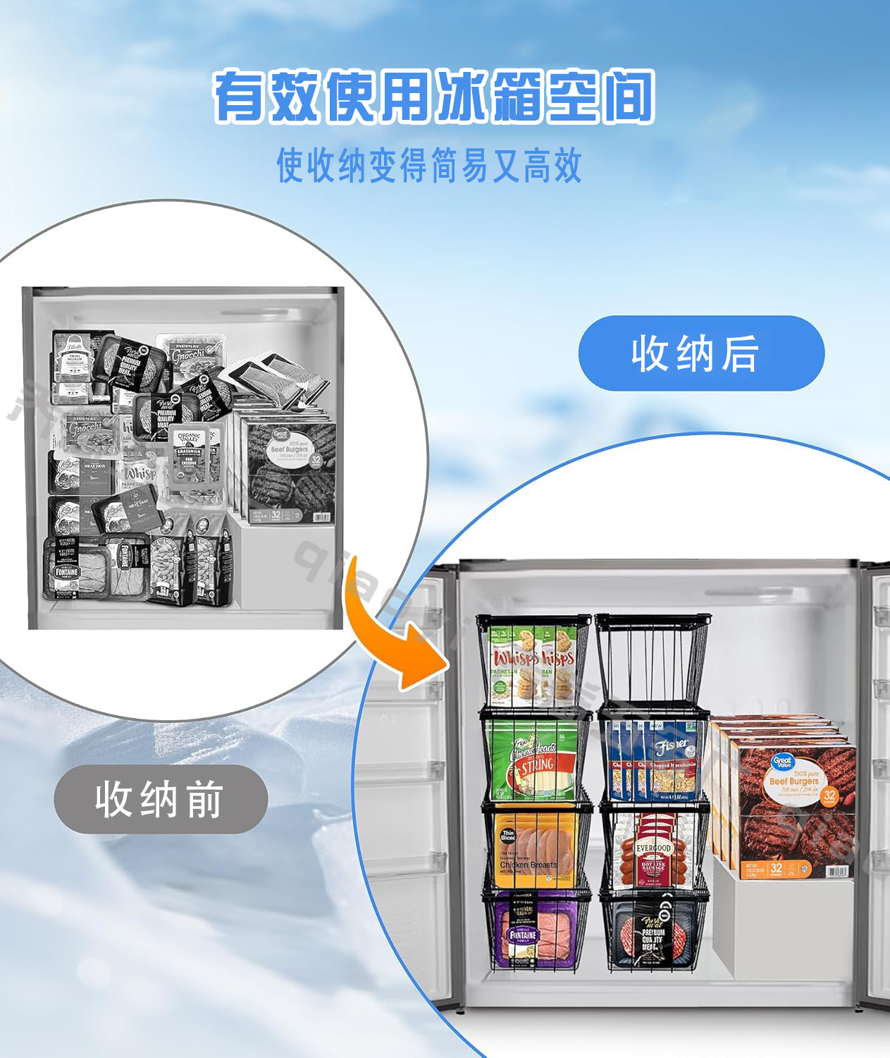 뜨거운 판매 냉동고 저장 바구니 주방 저장 철 바구니 저장 동결 파티션 꼬리 바구니 냉장고 저장 바구니