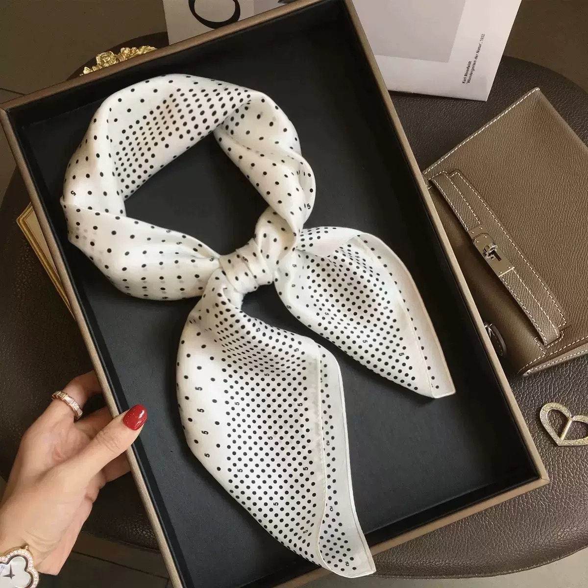 한국 스타일 70×70cm 작은 사각 스카프, 봄 여름 여성용 얇은 실크 스카프, 자외선 차단 목 스카프, 머리띠, 다용도 스카프