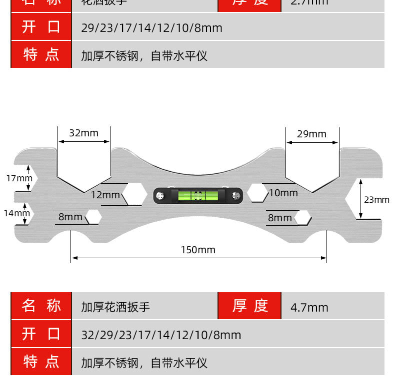 • 4.7 특후[29+32] 대형 오픈 엔드 렌치(스테인리스 스틸) 1개