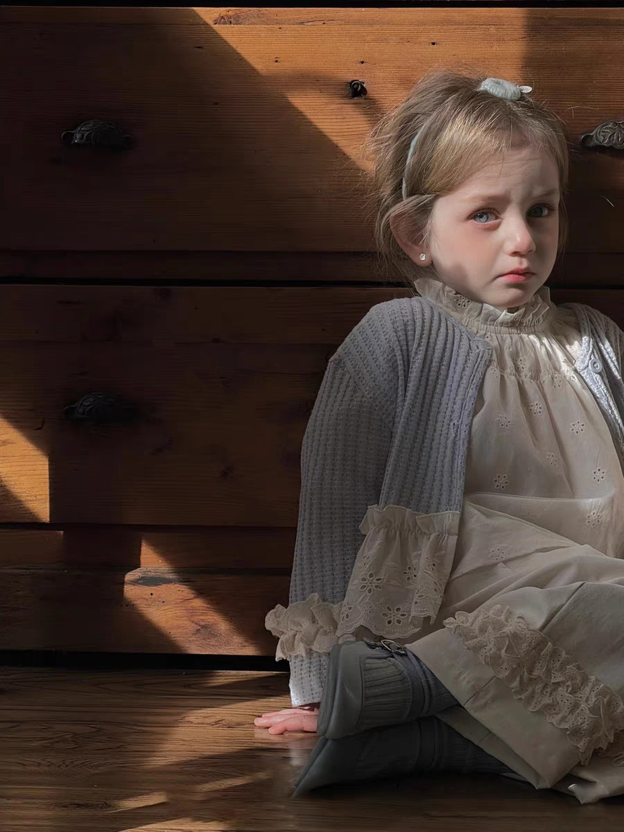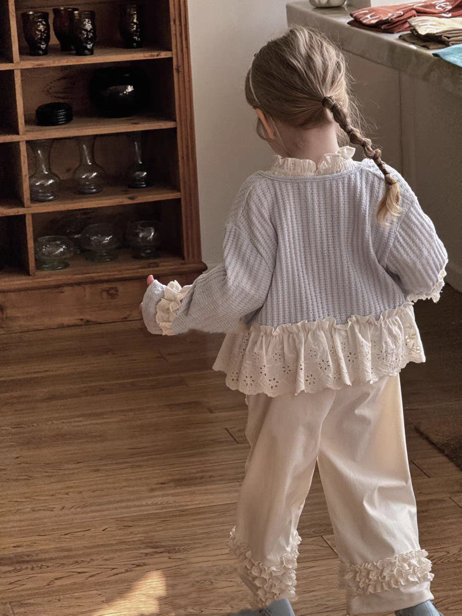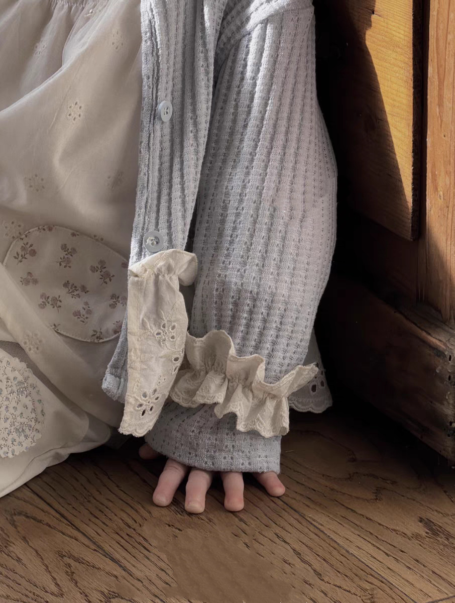 한국식 아동복 여아 카디건 봄 새 어린이 공주 모리 스타일 바느질 레이스 작은 카디건 재킷