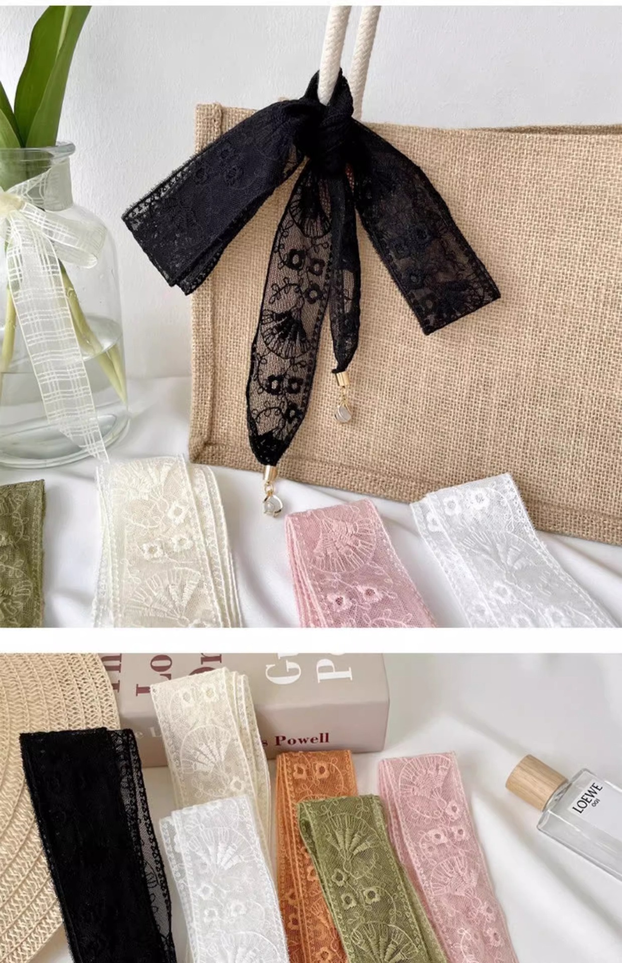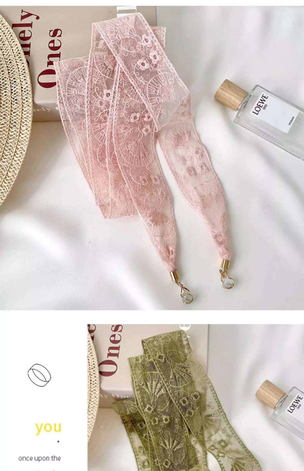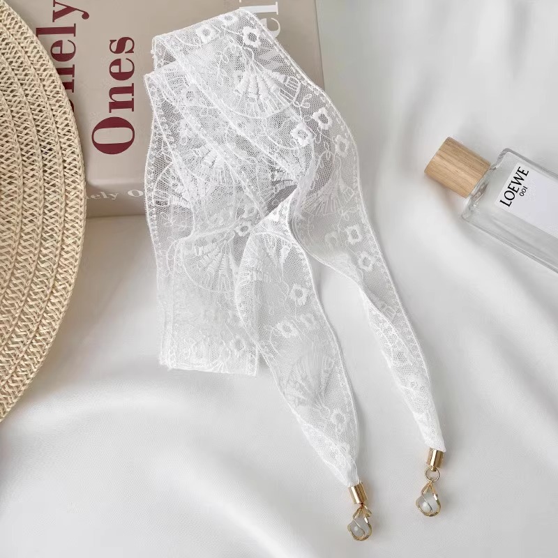 한국 스타일 레이스 벨트 소녀의 리본 장식 스카프 작은 스카프 헤어 벨트 긴 얇은 좁은 펜던트 목걸이 스카프 여성