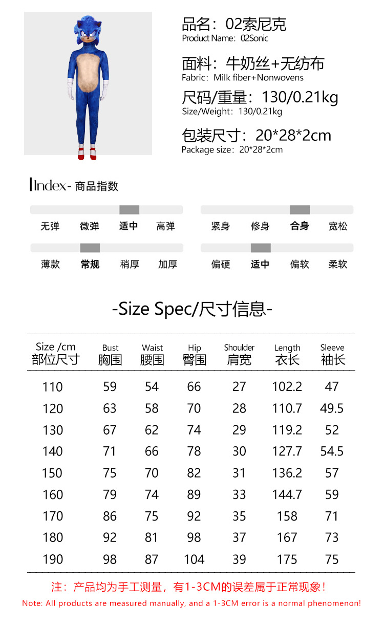 해외 직구 할로윈 의상 어린이 코스프레 소닉 더 헤지워그 5 캐릭터 코스프레 타이츠