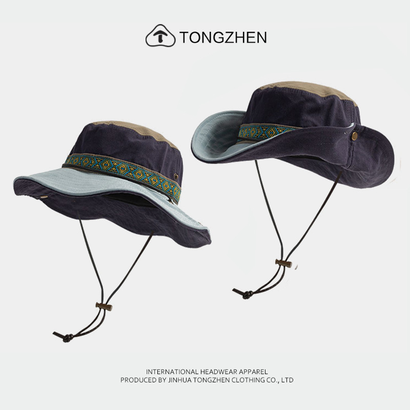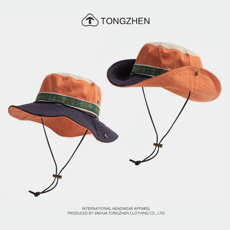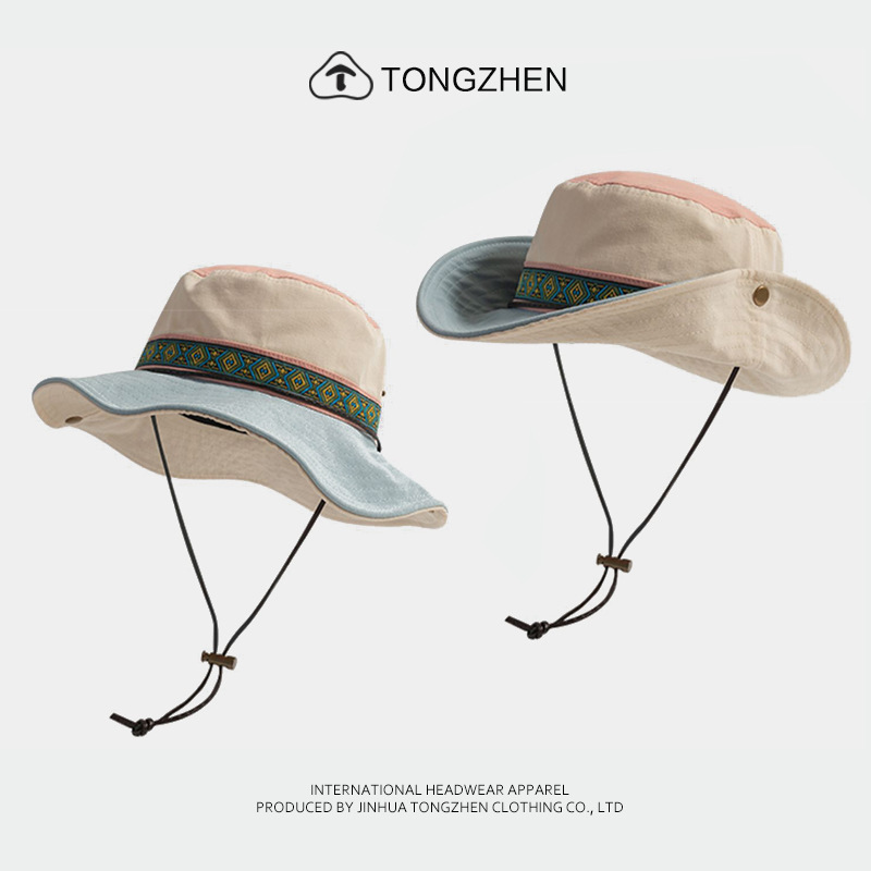 남녀공용 햇빛 가리개 벙거지 모자, 챙이 넓은 야외용 자외선 차단 모자, 어린이 캠핑, 하이킹, 등산 모자, 다용도 에스닉 스타일