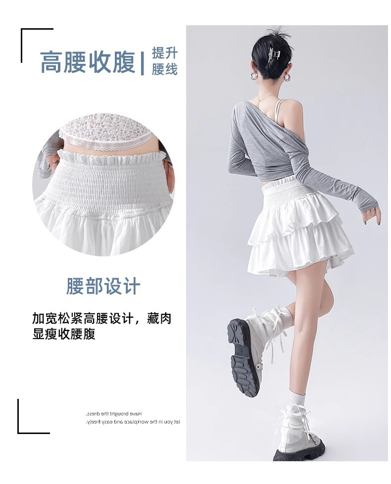 흰색 푹신한 짧은 치마 여성의 봄과 가을 2025 새로운 달콤한 발레 케이크 스커트 높은 허리 슬림 하프 스커트스토어 가기