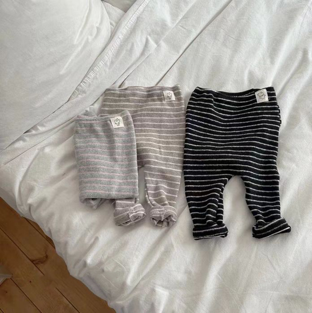한국 스타일 Ins 스트라이프 레깅스 봄과 가을 대형 PP 바지 소년 소녀를위한 간단한 올 매치 캐주얼 바지 아기 어린이 바지스토어 가기