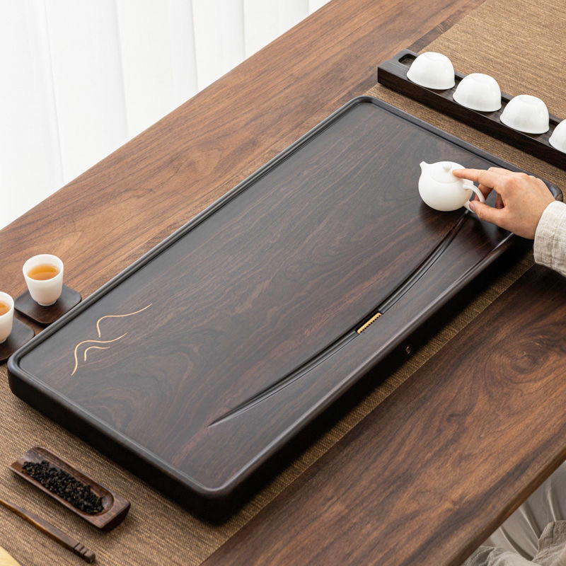 전체 블랙 샌달 우드 티 트레이 솔리드 우드 간단한 로그 티 플랫폼 직사각형 가정용 배수 쿵푸 티 세트 중국 스타일스토어 가기