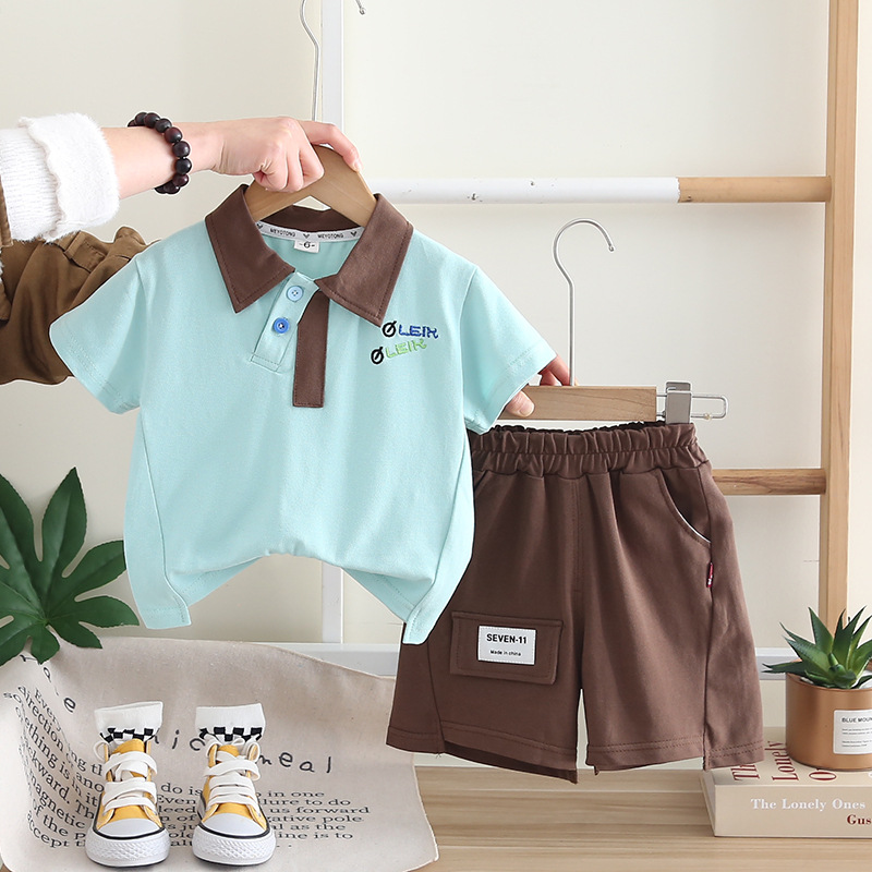 소년의 기울어 진 옷깃 반팔 세트 대외 무역 새로운 아기 아이들의 외국식 투피스 아기의 겉옷