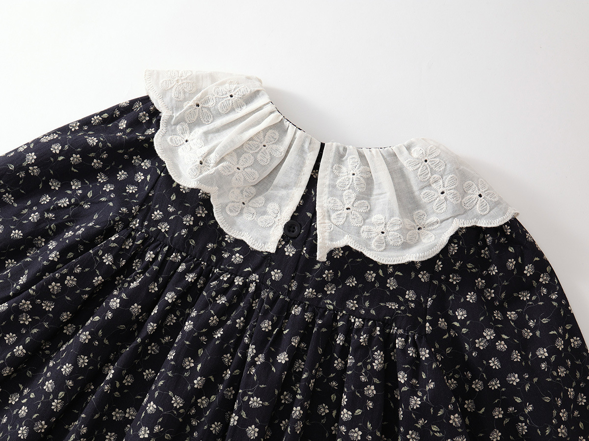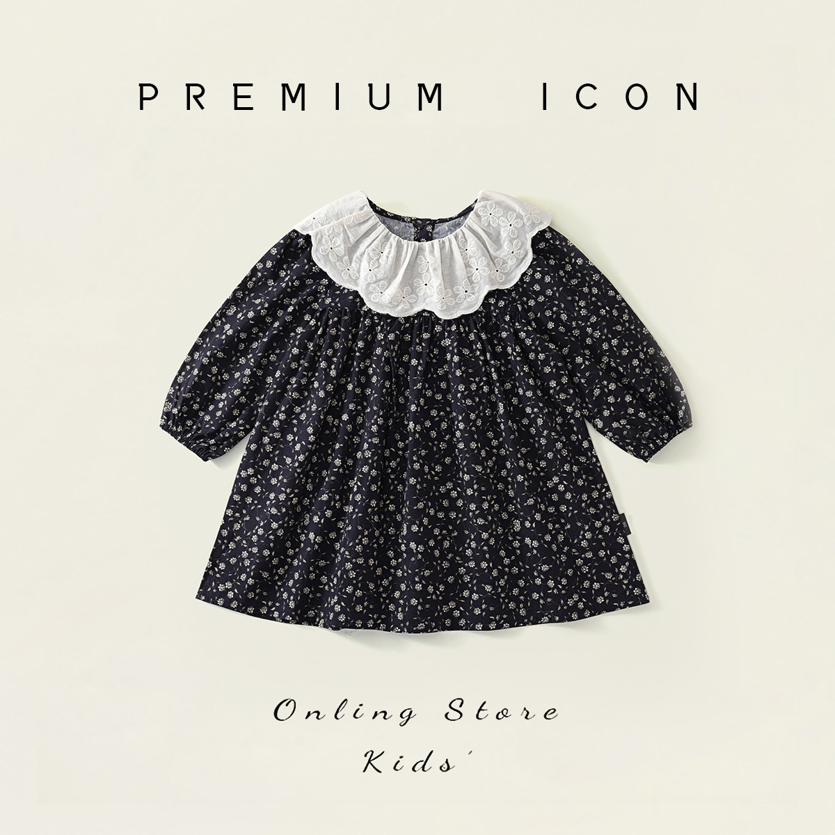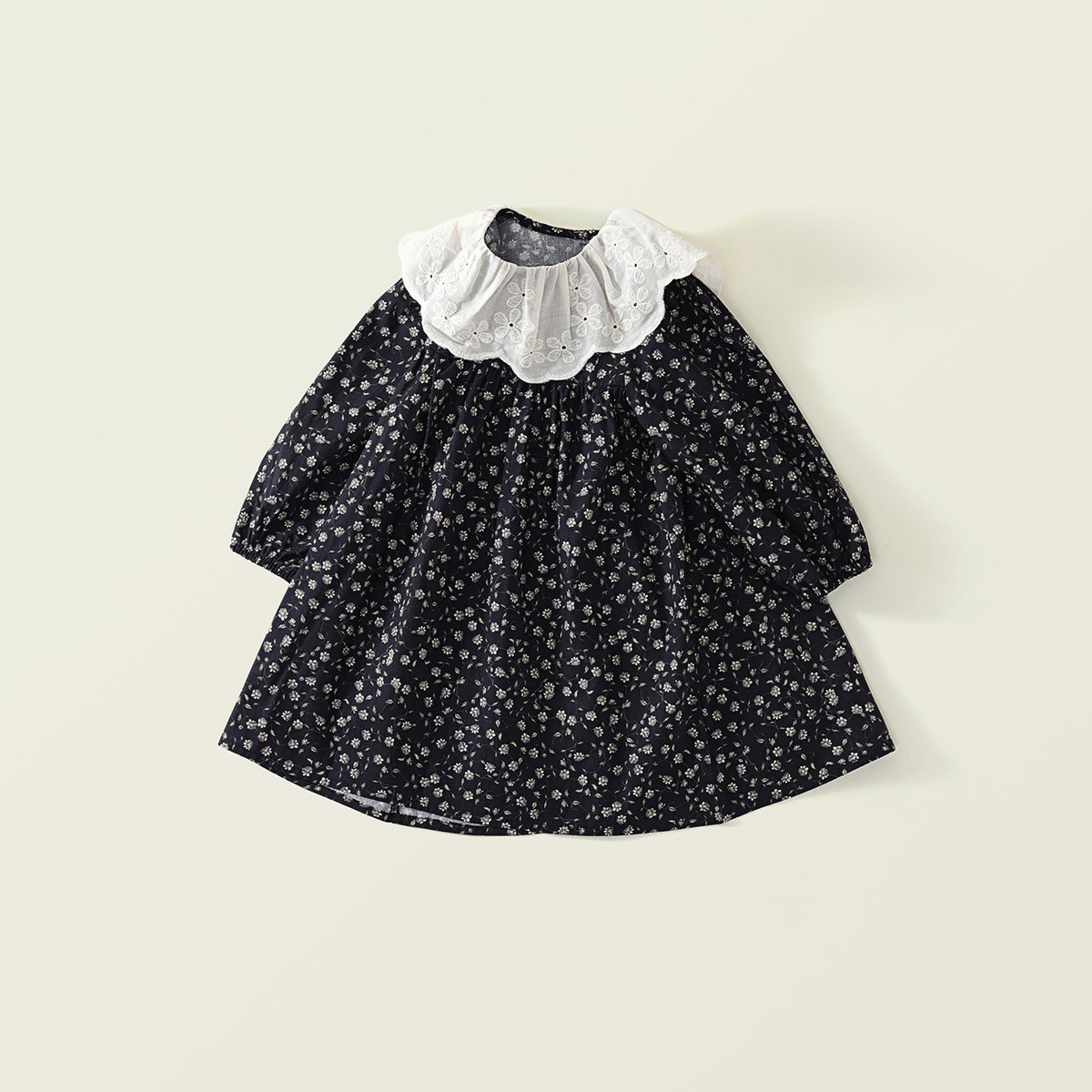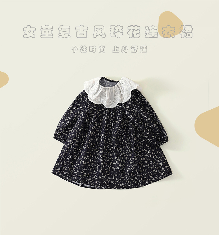 소녀 레트로 꽃 긴팔 원피스 2025 봄과 가을 새로운 어린이 자카드 옷깃 코튼 프린세스 원피스스토어 가기
