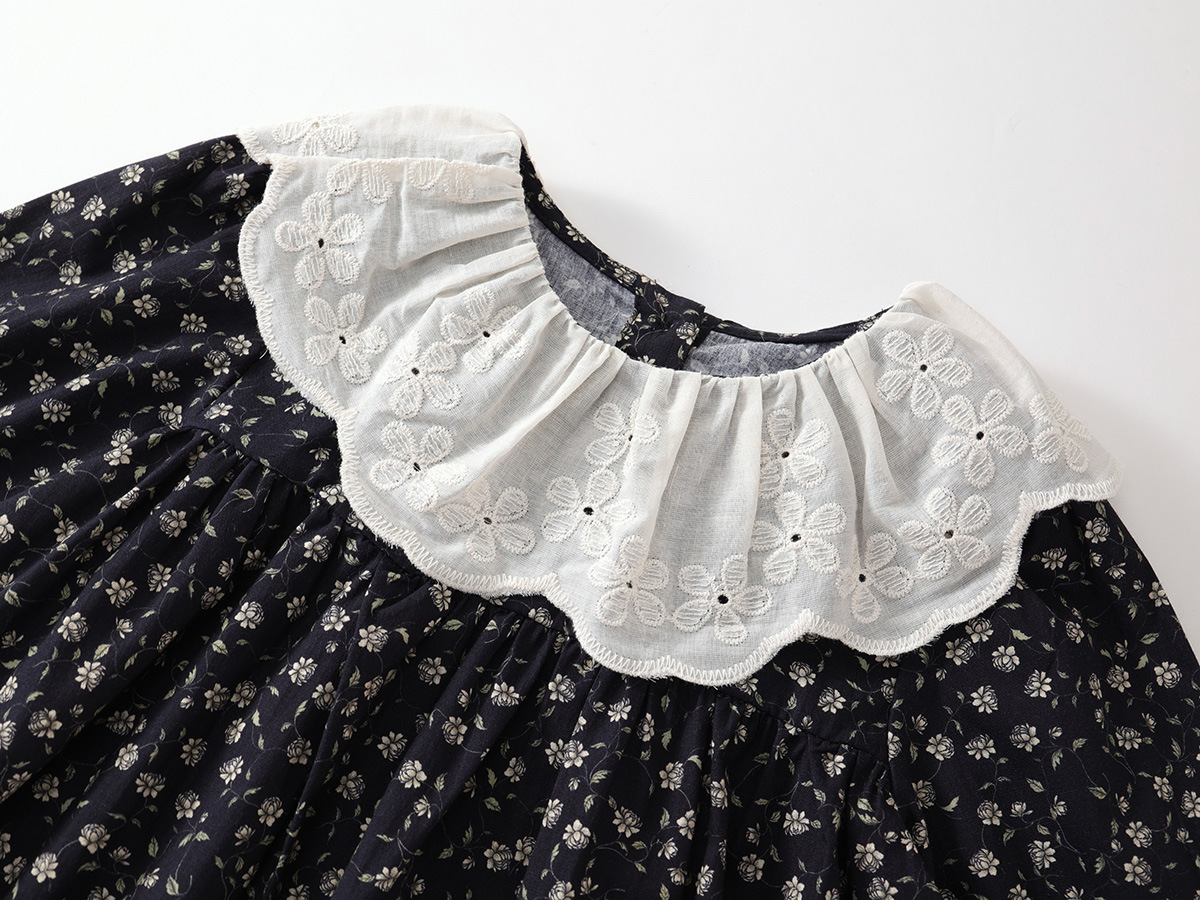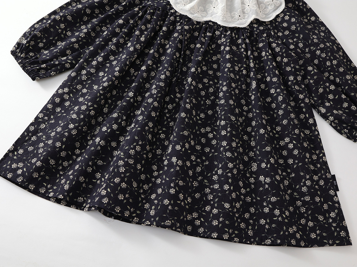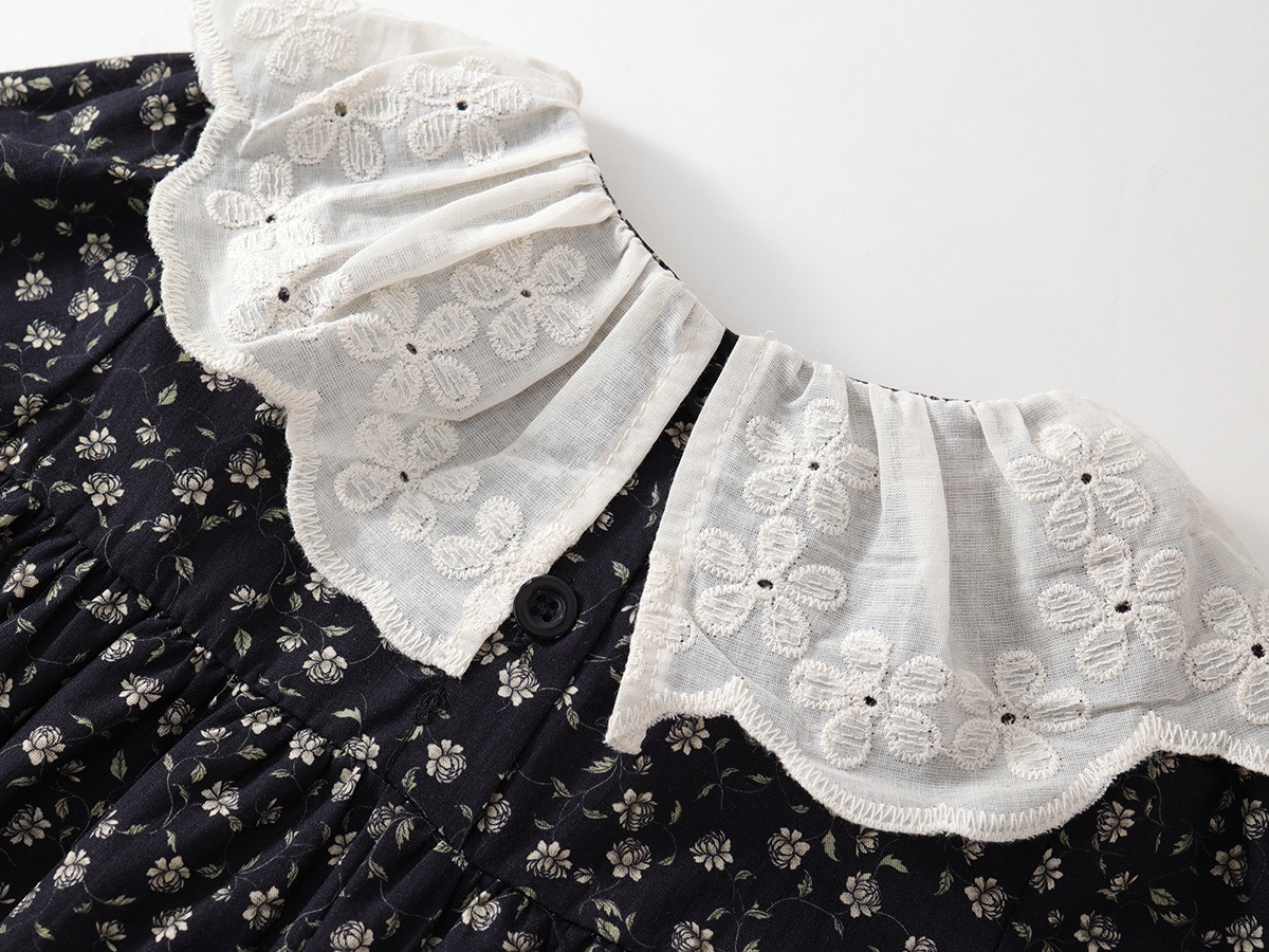 소녀 레트로 꽃 긴팔 원피스 2025 봄과 가을 새로운 어린이 자카드 옷깃 코튼 프린세스 원피스스토어 가기
