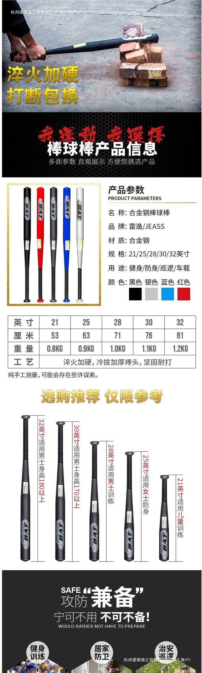 두껍고 강화 된 야구 방망이 젖빛 합금 강철 검은 야구 스틱 철제 막대기 자동차 자기 방어 법적 무기 야구 방망이 없음
