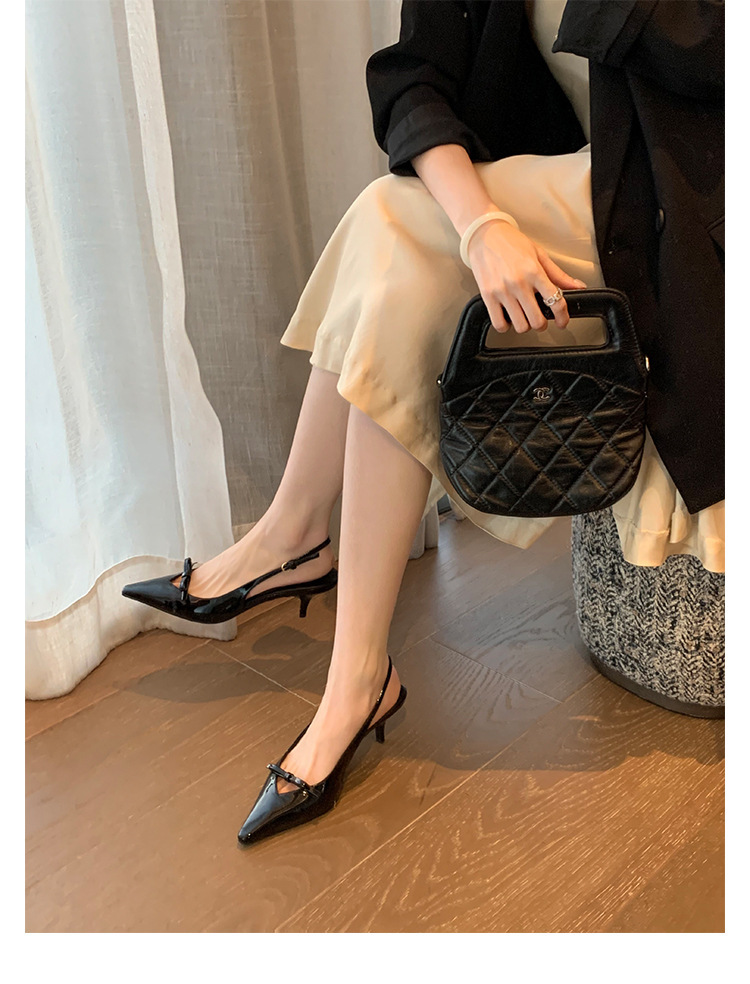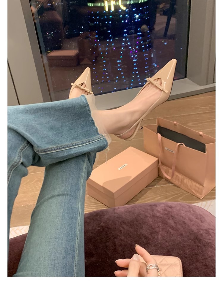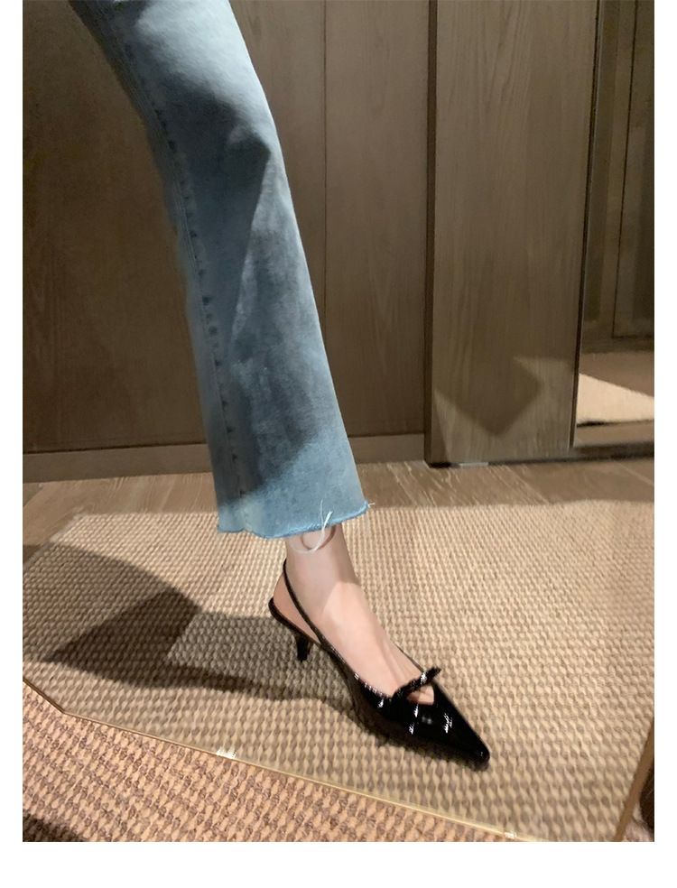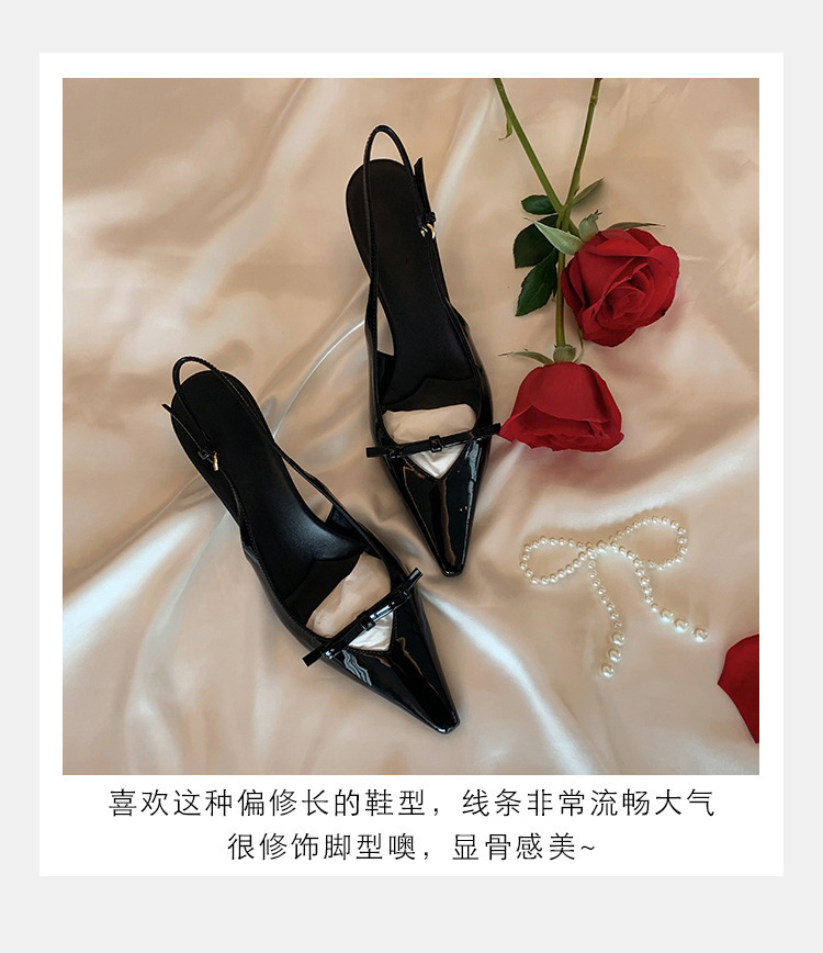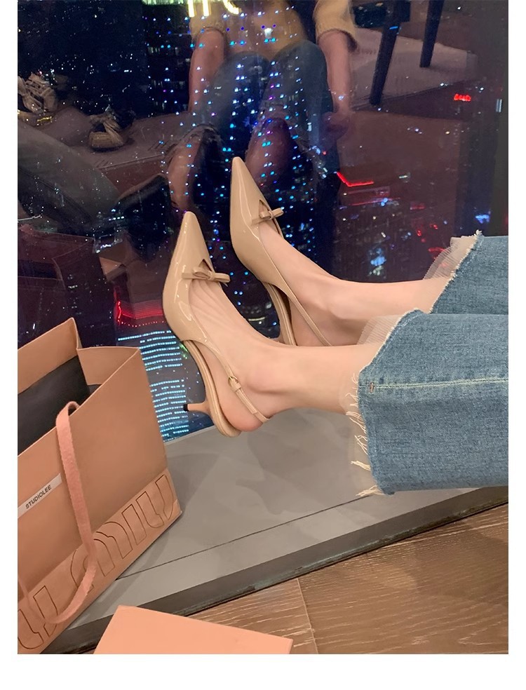Cowhide 버전 ~ 아름다운 활 정품 가죽 하이힐 여성용 스틸레토 힐과 하이힐 샌들 포인팅 샌들스토어 가기