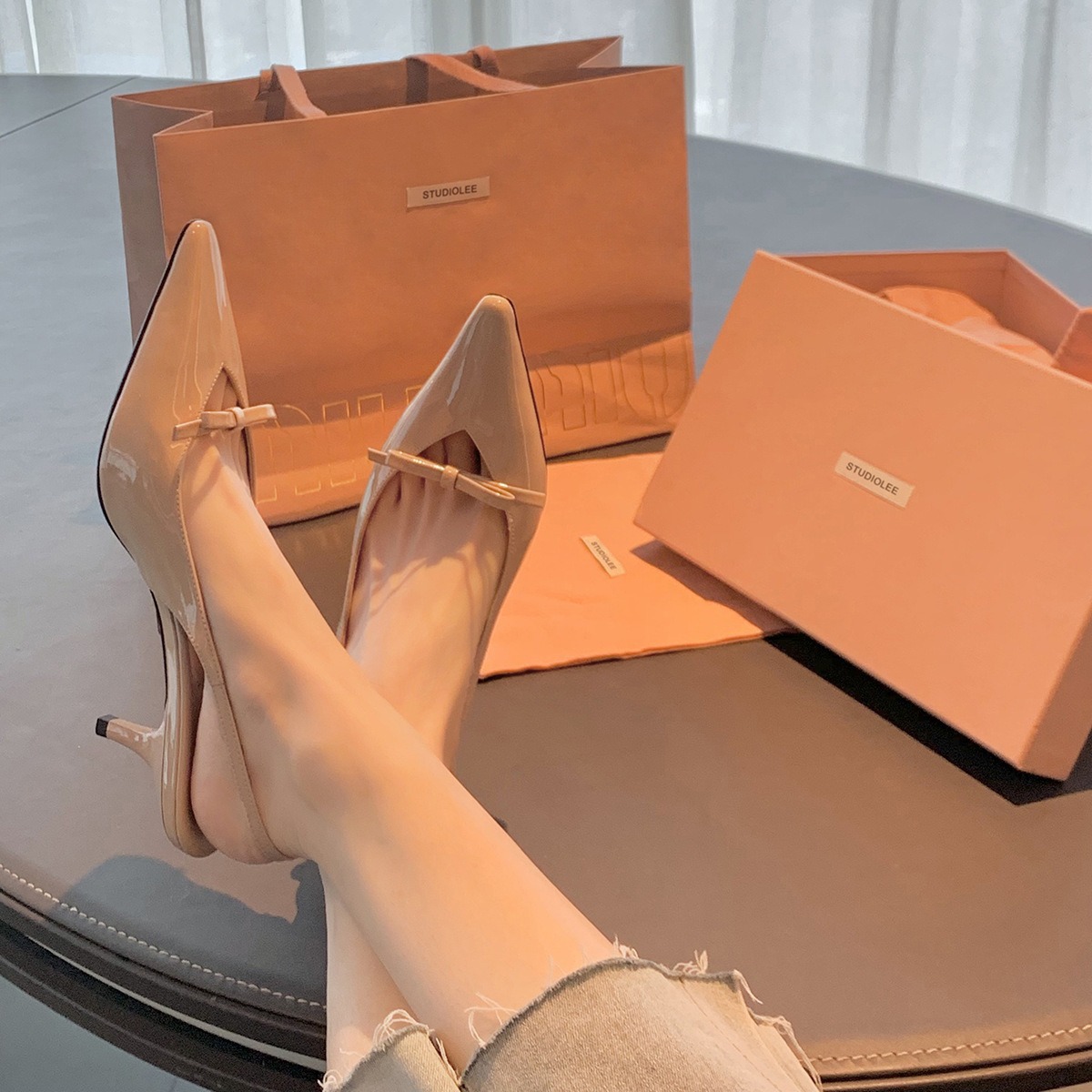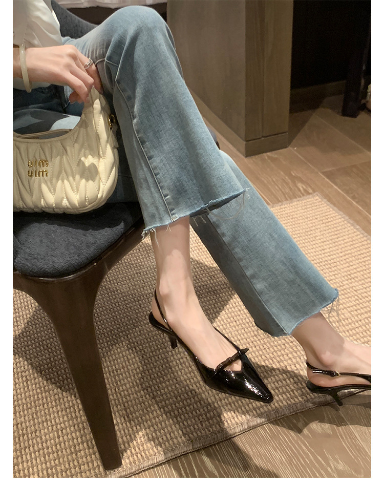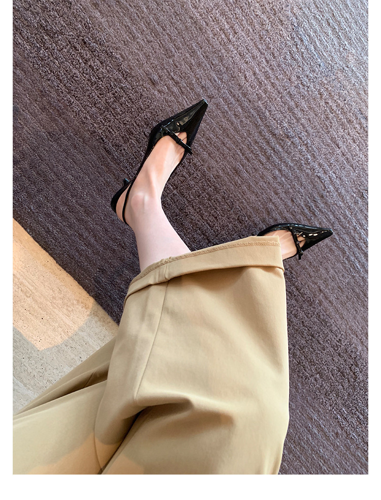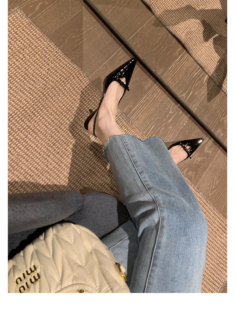 Cowhide 버전 ~ 아름다운 활 정품 가죽 하이힐 여성용 스틸레토 힐과 하이힐 샌들 포인팅 샌들스토어 가기