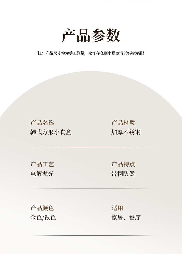 • 금색(손잡이 없음) - 작은 높은 사각형 접시