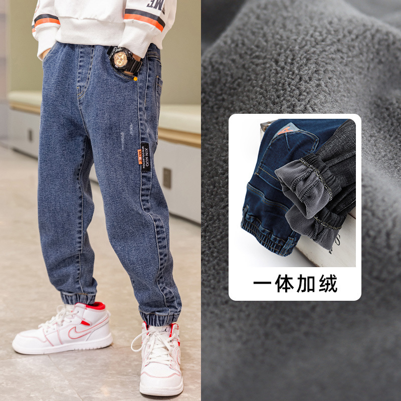 빅 보이 겨울 바지 기모 두꺼운 스포츠 바지 2025 겨울 새 어린이 원피스 벨벳 운동복 가을 겨울스토어 가기
