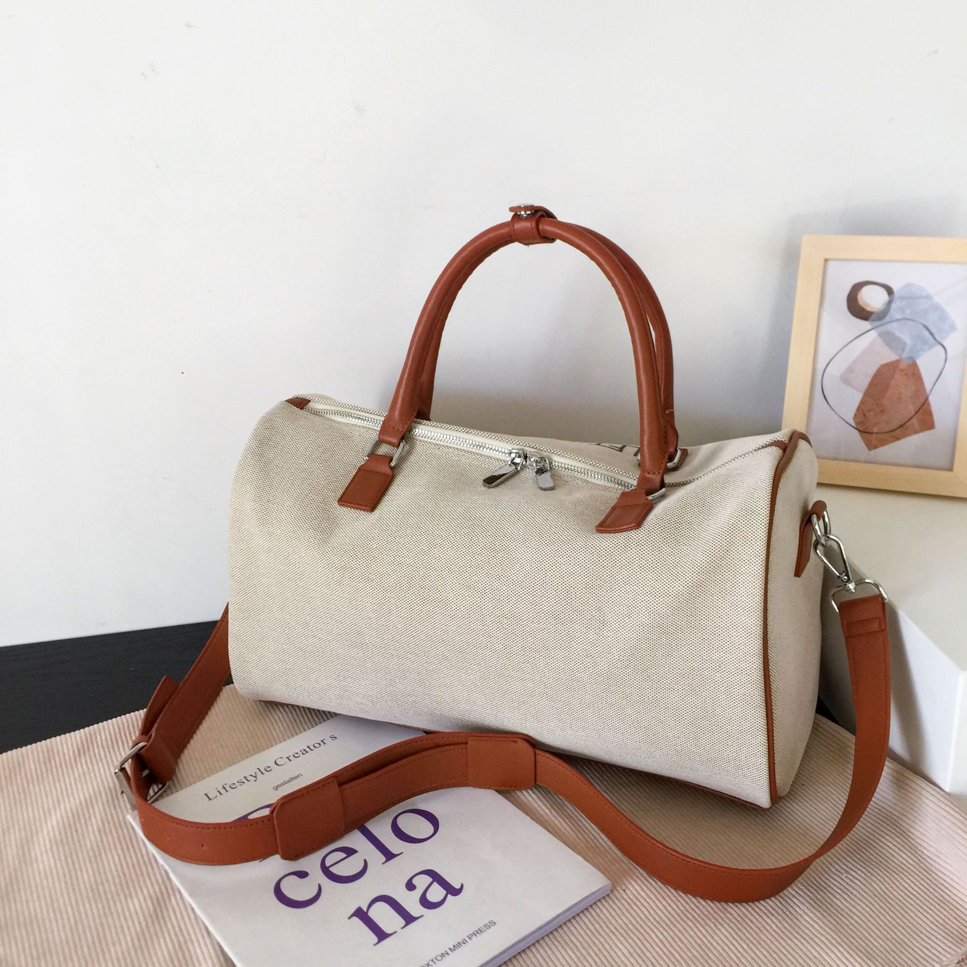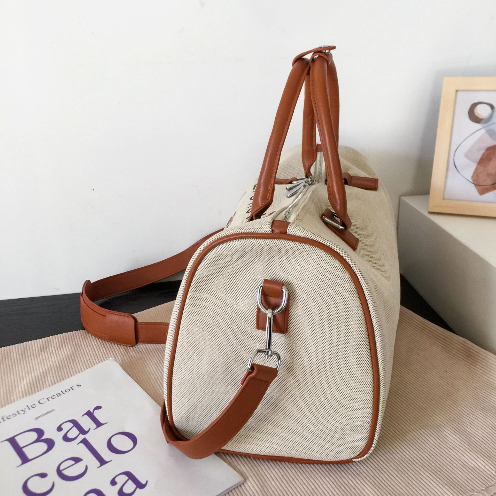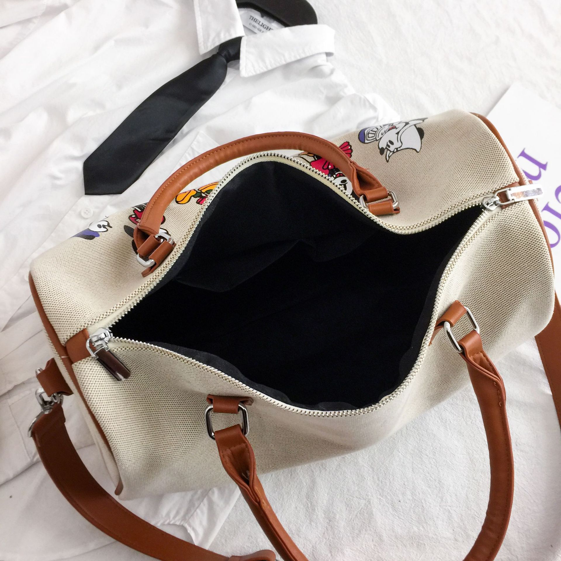새로운 만화 캔버스 요가 가방 여성 어깨 가방 짧은 거리 여행 가방 여성 가방 유행 일본과 한국식 대용량 봄 여행 가방스토어 가기