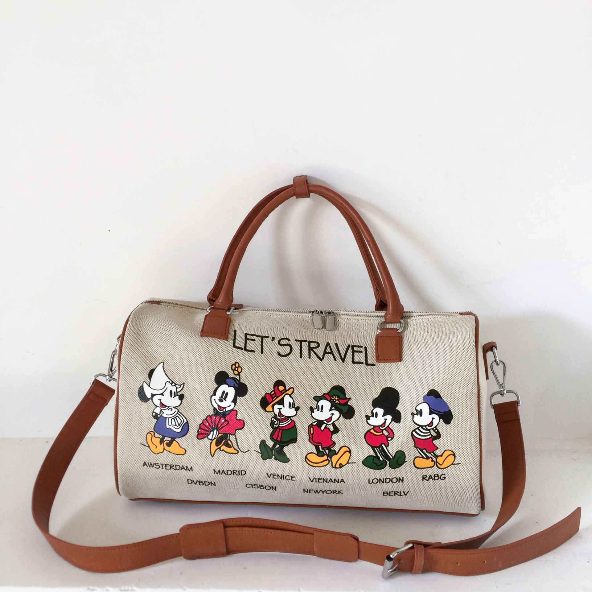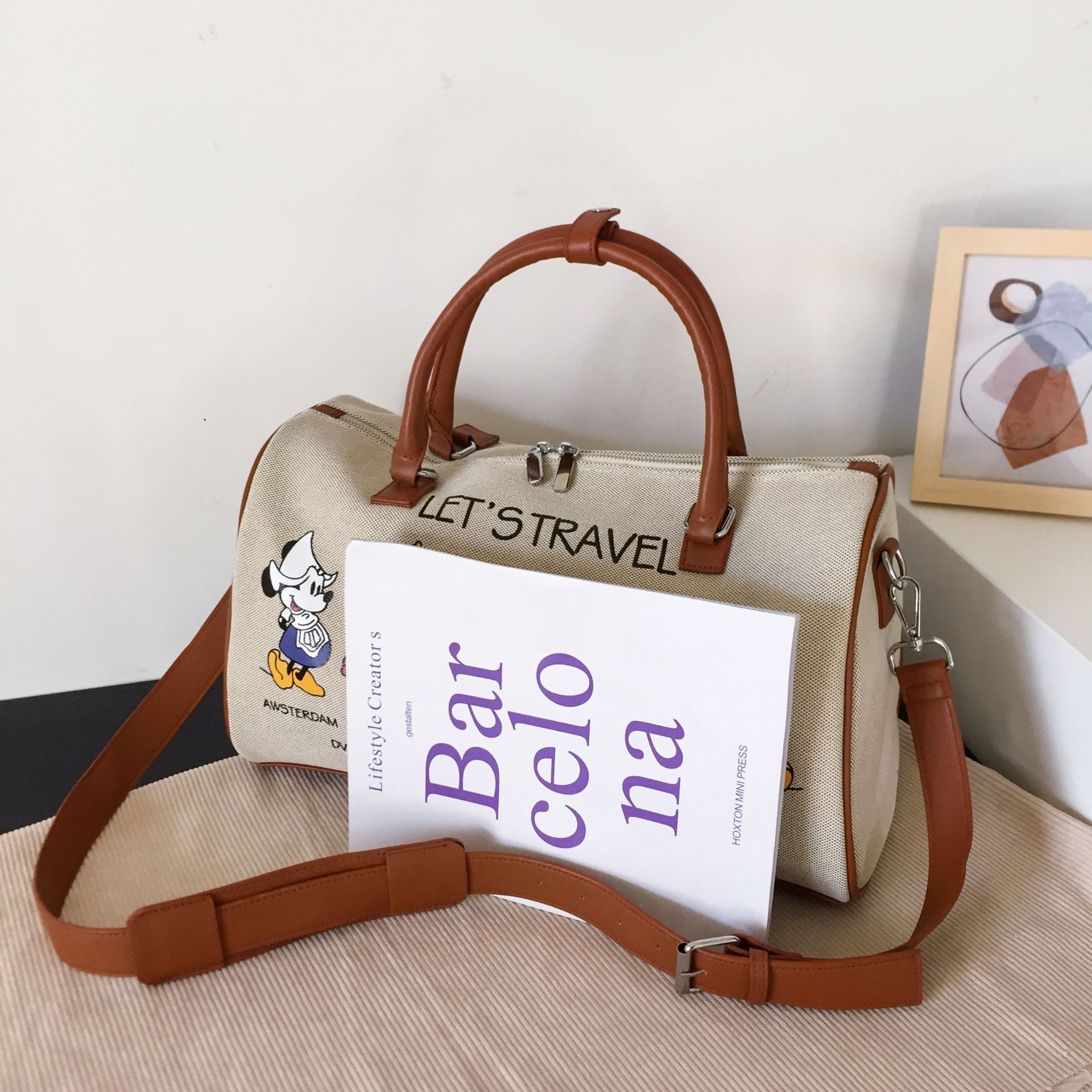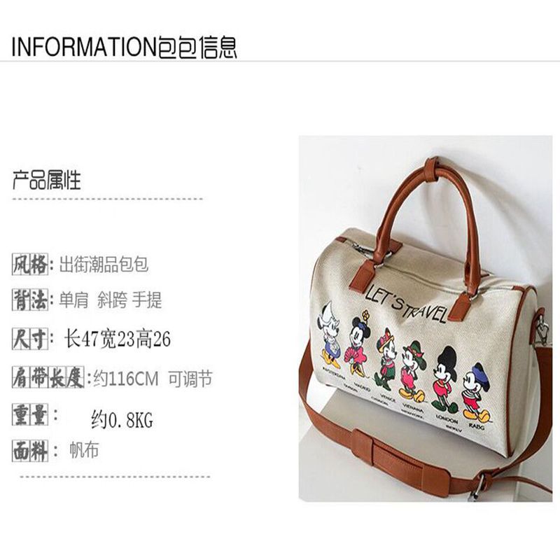 새로운 만화 캔버스 요가 가방 여성 어깨 가방 짧은 거리 여행 가방 여성 가방 유행 일본과 한국식 대용량 봄 여행 가방