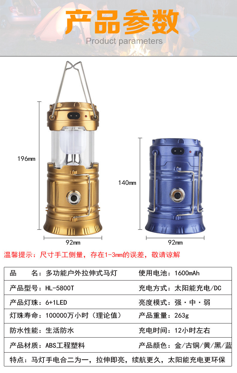 야외 새로운 말 랜턴 5800 캠핑 라이트 태양 충전 LED 캠핑 텐트 다기능 휴대용 스트레치 라이트스토어 가기