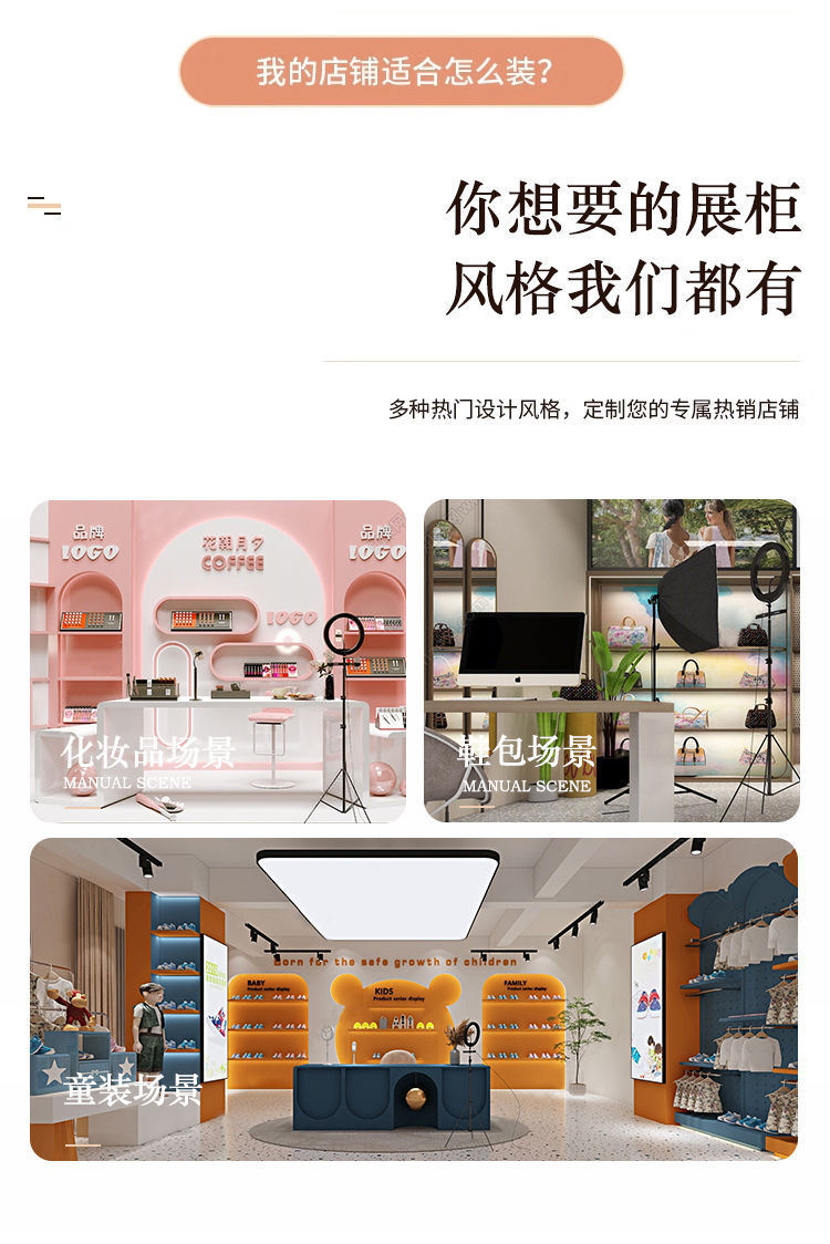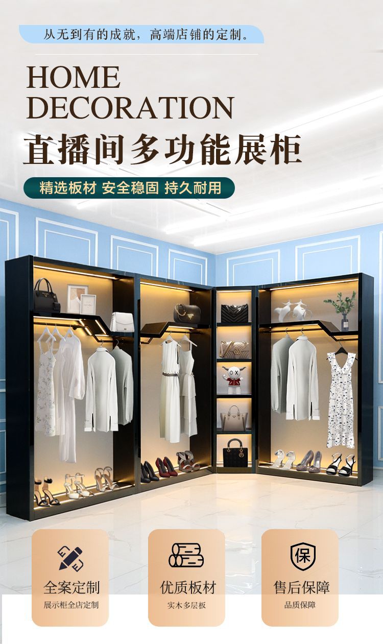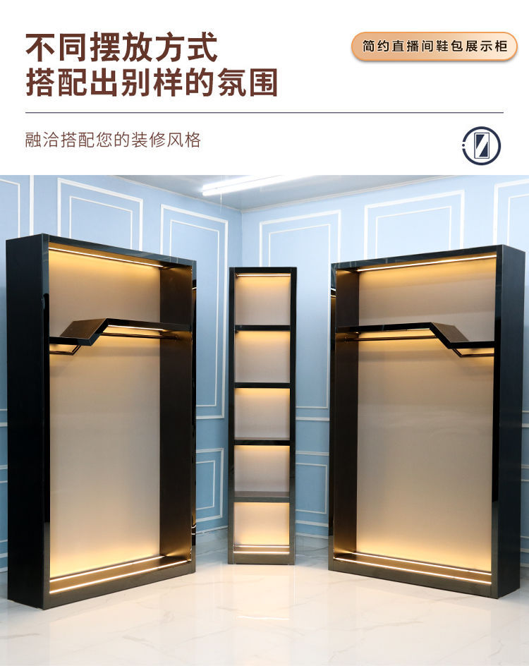 옷 가방 라이브 룸 디스플레이 캐비닛 간단한 의류 매장 베이킹 페인트 캐비닛 라이트 디스플레이 랙 앵커 배경 캐비닛