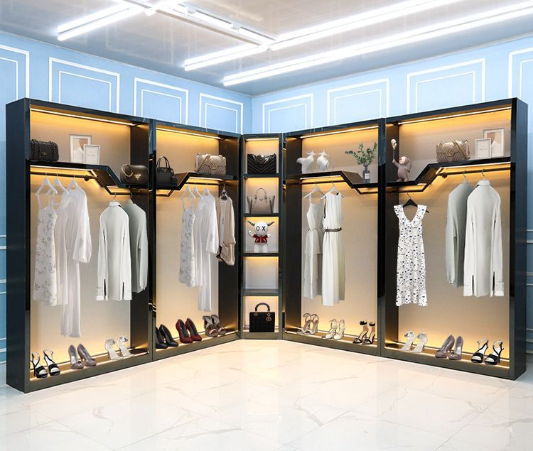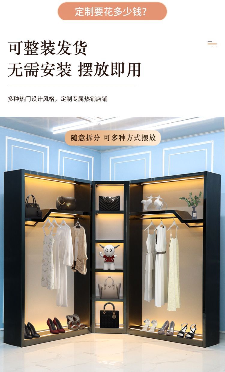 옷 가방 라이브 룸 디스플레이 캐비닛 간단한 의류 매장 베이킹 페인트 캐비닛 라이트 디스플레이 랙 앵커 배경 캐비닛스토어 가기