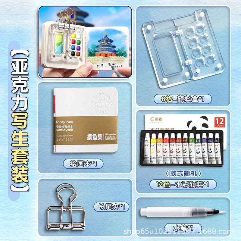 미니 수채화 작은 드로잉 보드 아크릴 휴대용 손 계정 여행 스케치 그림 수채화 세트 도매스토어 가기