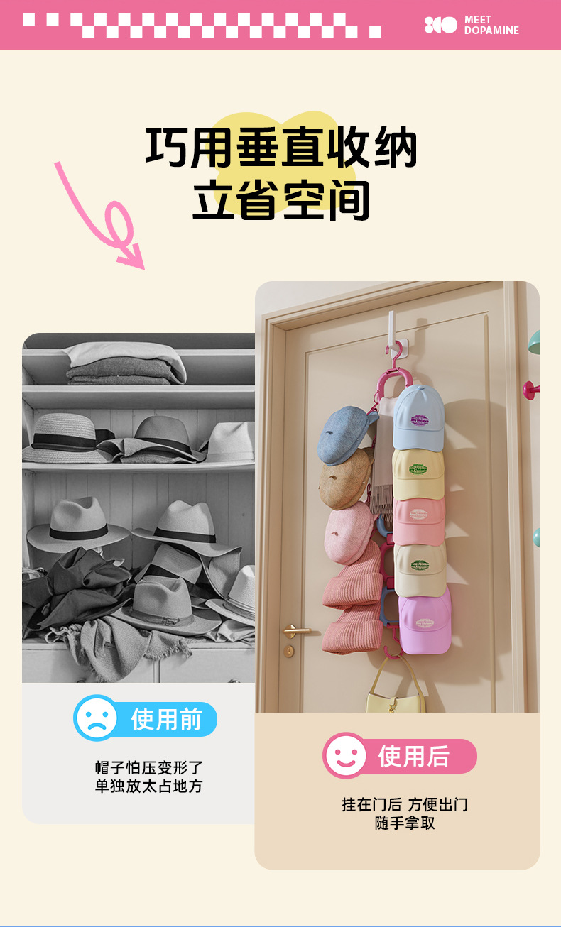 도파민 코트 및 후드 보관 랙 가정용 옷장 내부 모자 보관 넥타이 및 스카프 침실 다기능 보관 랙