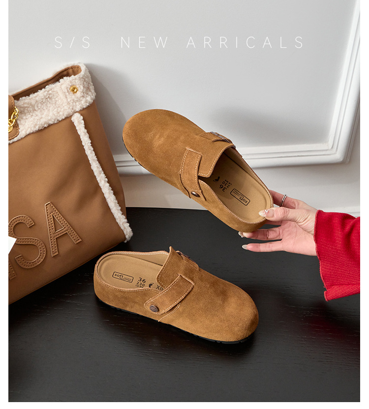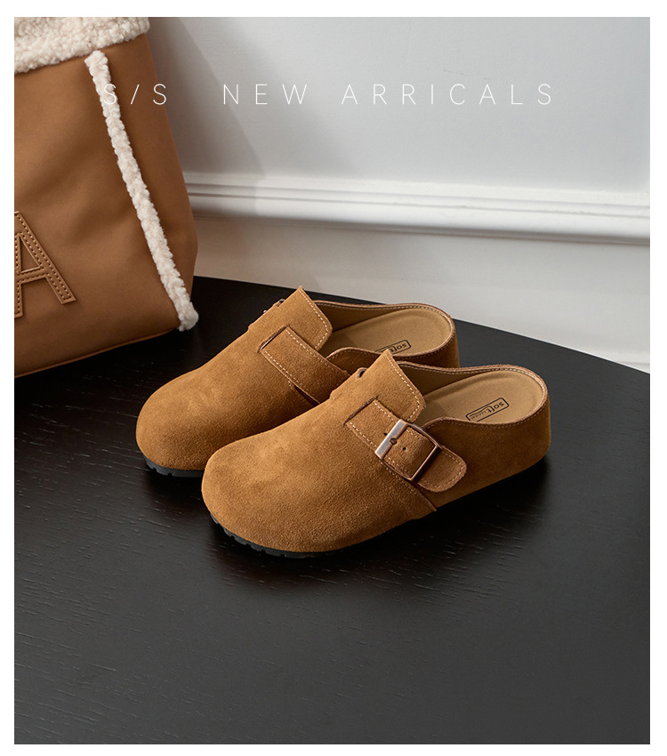 여성용 천연가죽 두꺼운 밑창 버켄스탁 슈즈, 2025 봄 레이지 토캡 하프슬리퍼, 벨트 버클 버켄스탁 슈즈스토어 가기