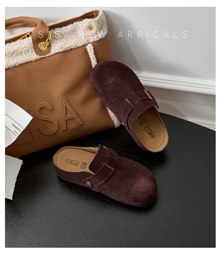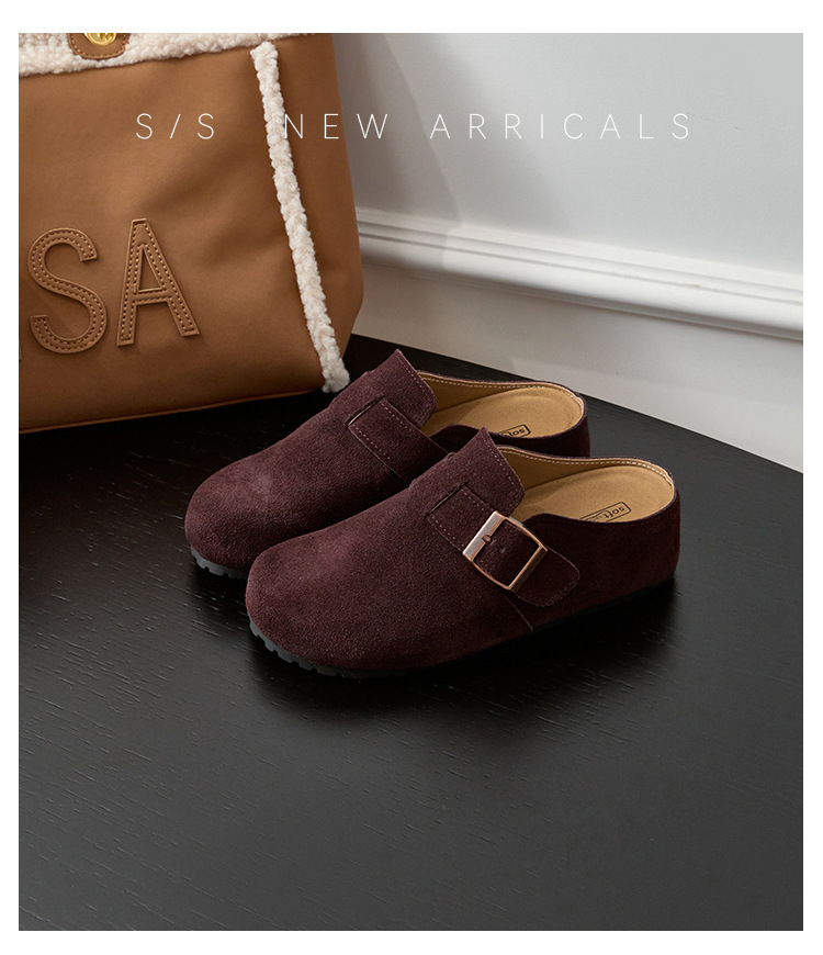 여성용 천연가죽 두꺼운 밑창 버켄스탁 슈즈, 2025 봄 레이지 토캡 하프슬리퍼, 벨트 버클 버켄스탁 슈즈
