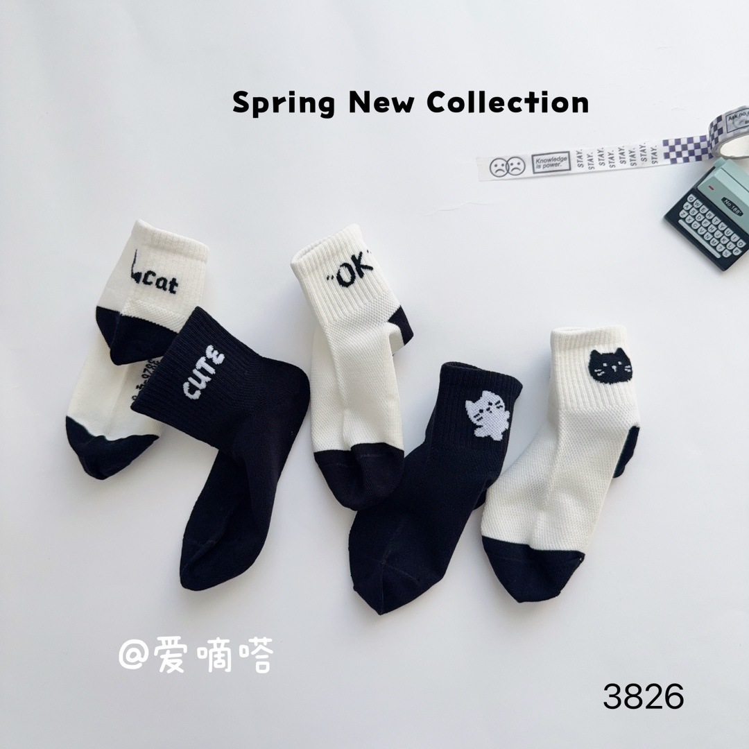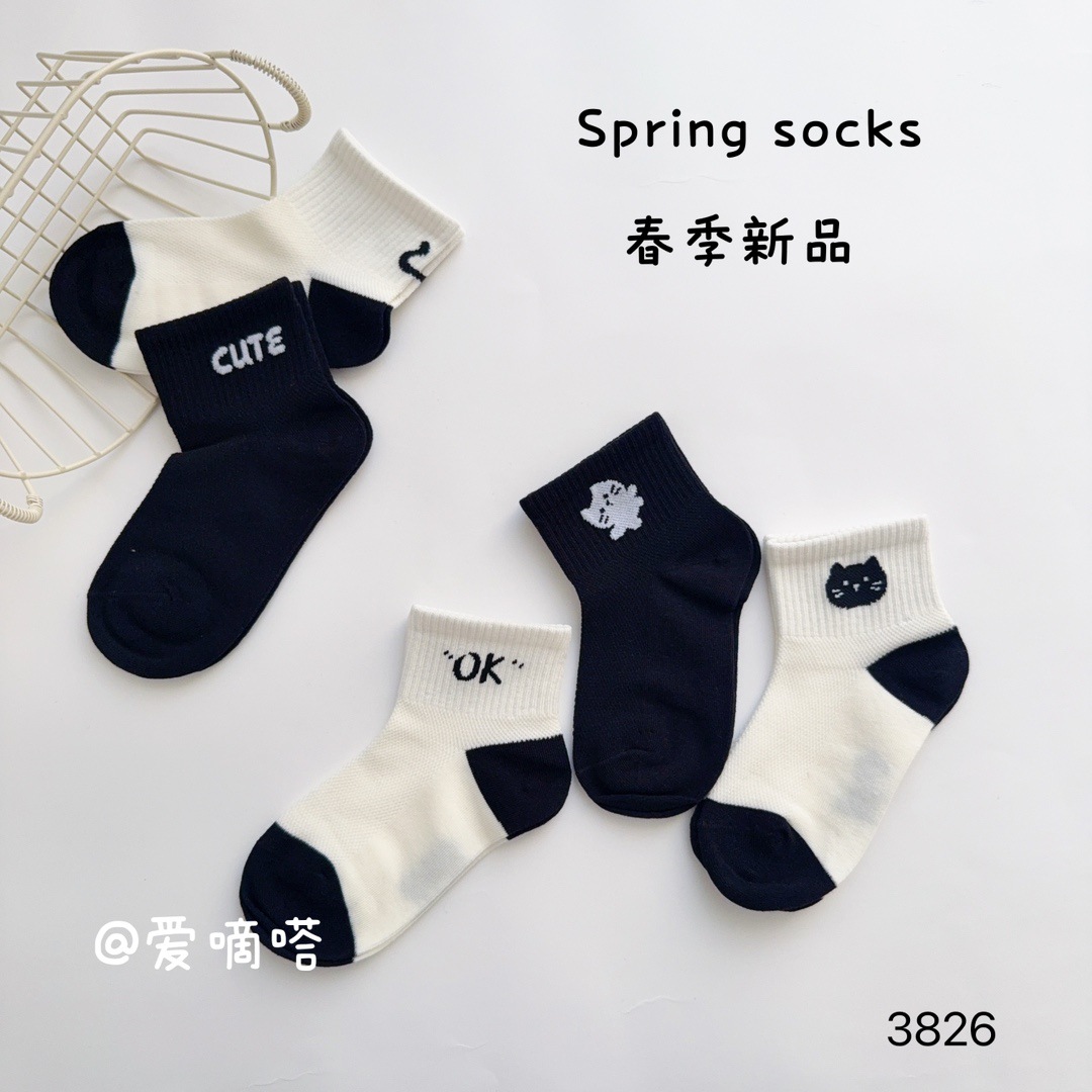 사랑의 진드기 어린이 양말 봄과 여름 새로운 만화 흑백 문자 소녀 반 그물 짧은 양말이 면화 학생 양말을 빗어스토어 가기