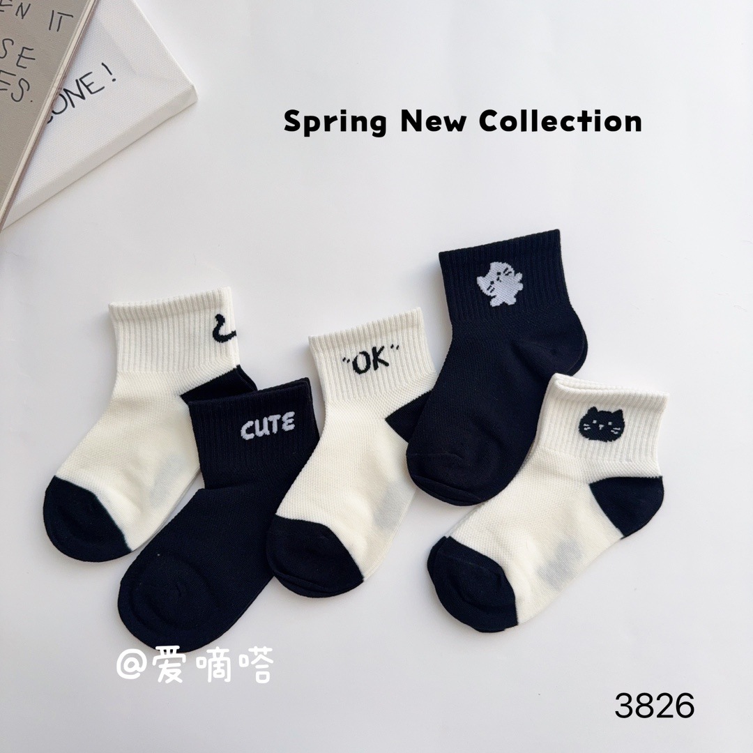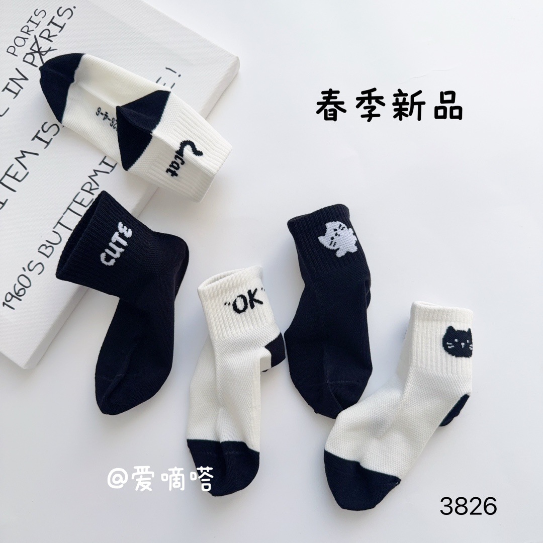 사랑의 진드기 어린이 양말 봄과 여름 새로운 만화 흑백 문자 소녀 반 그물 짧은 양말이 면화 학생 양말을 빗어