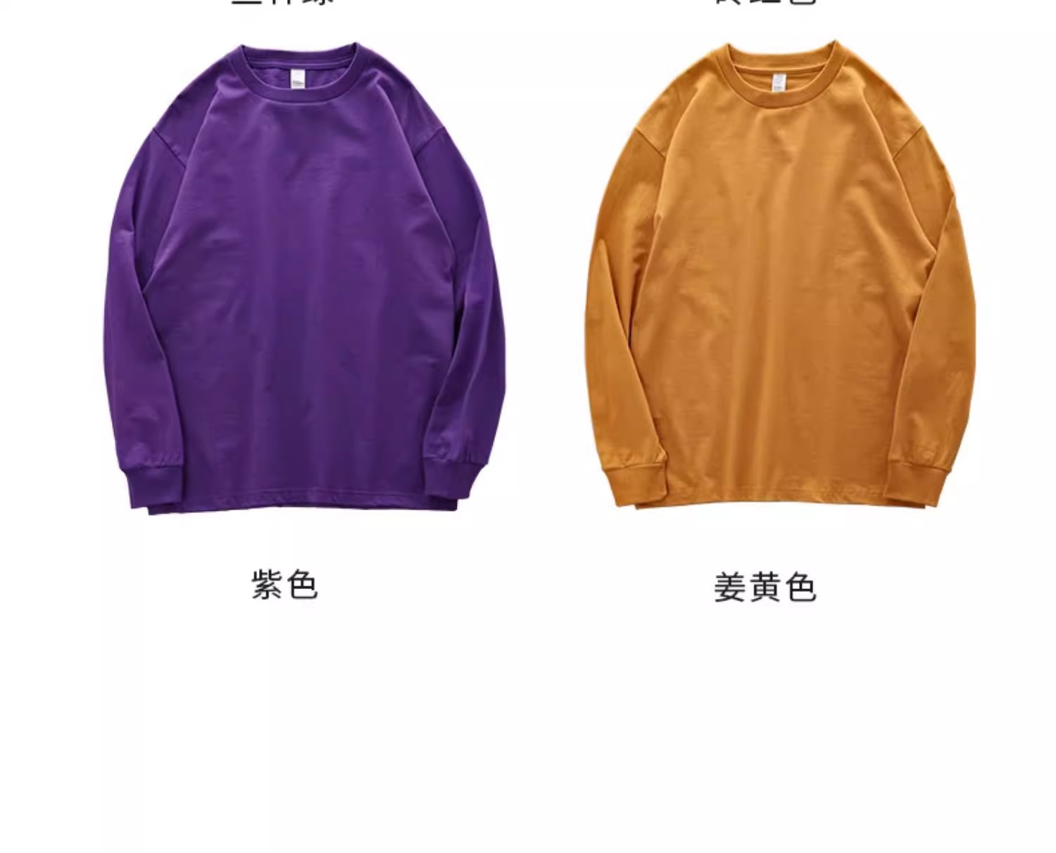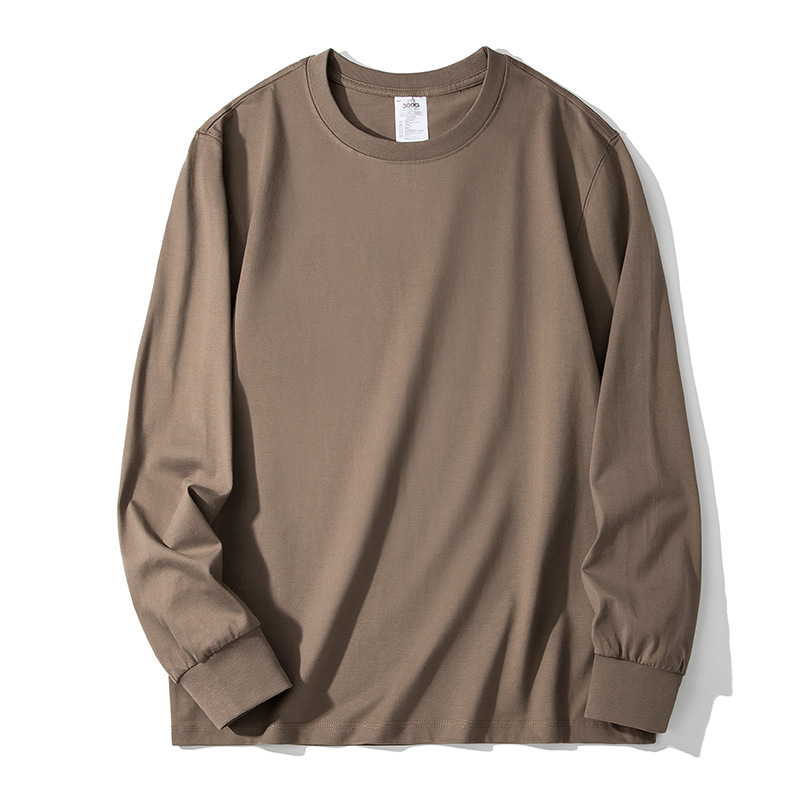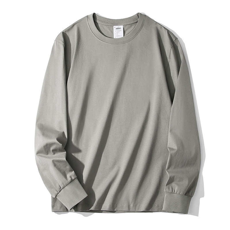 300G 헤비급 코마면 긴팔 티셔츠 남성용 봄 가을 무지 기본 티셔츠 라운드넥 스웨트셔츠 두껍고 투명하지 않음