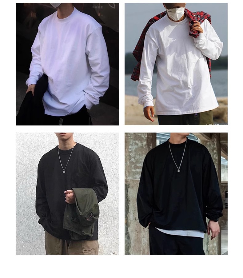 300G 헤비급 코마면 긴팔 티셔츠 남성용 봄 가을 무지 기본 티셔츠 라운드넥 스웨트셔츠 두껍고 투명하지 않음스토어 가기