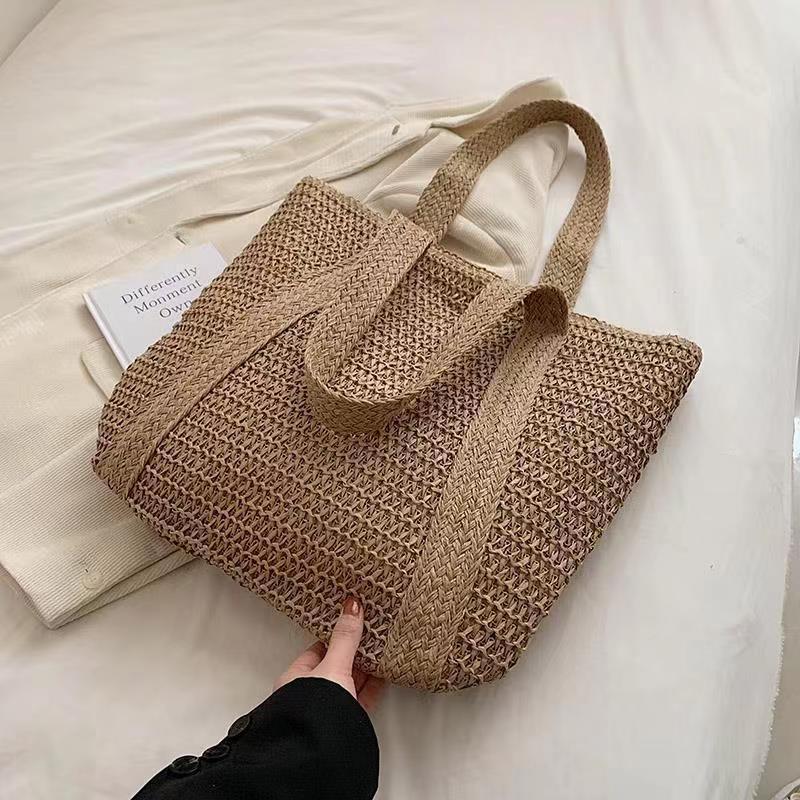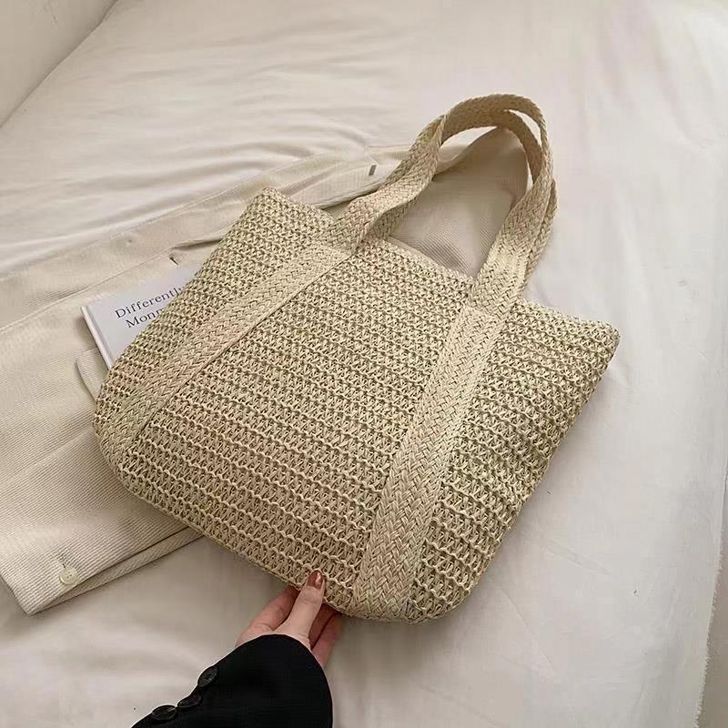 2024 새로운 어깨 가방 수제 짠 가방 여성 대용량 토트 백 유행 해변 휴가 밀짚 짠 가방