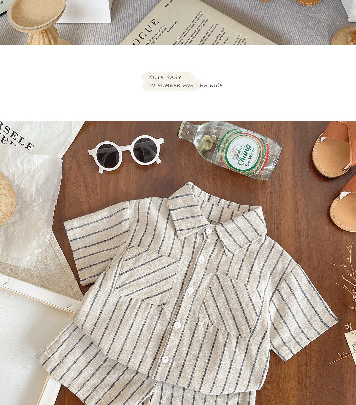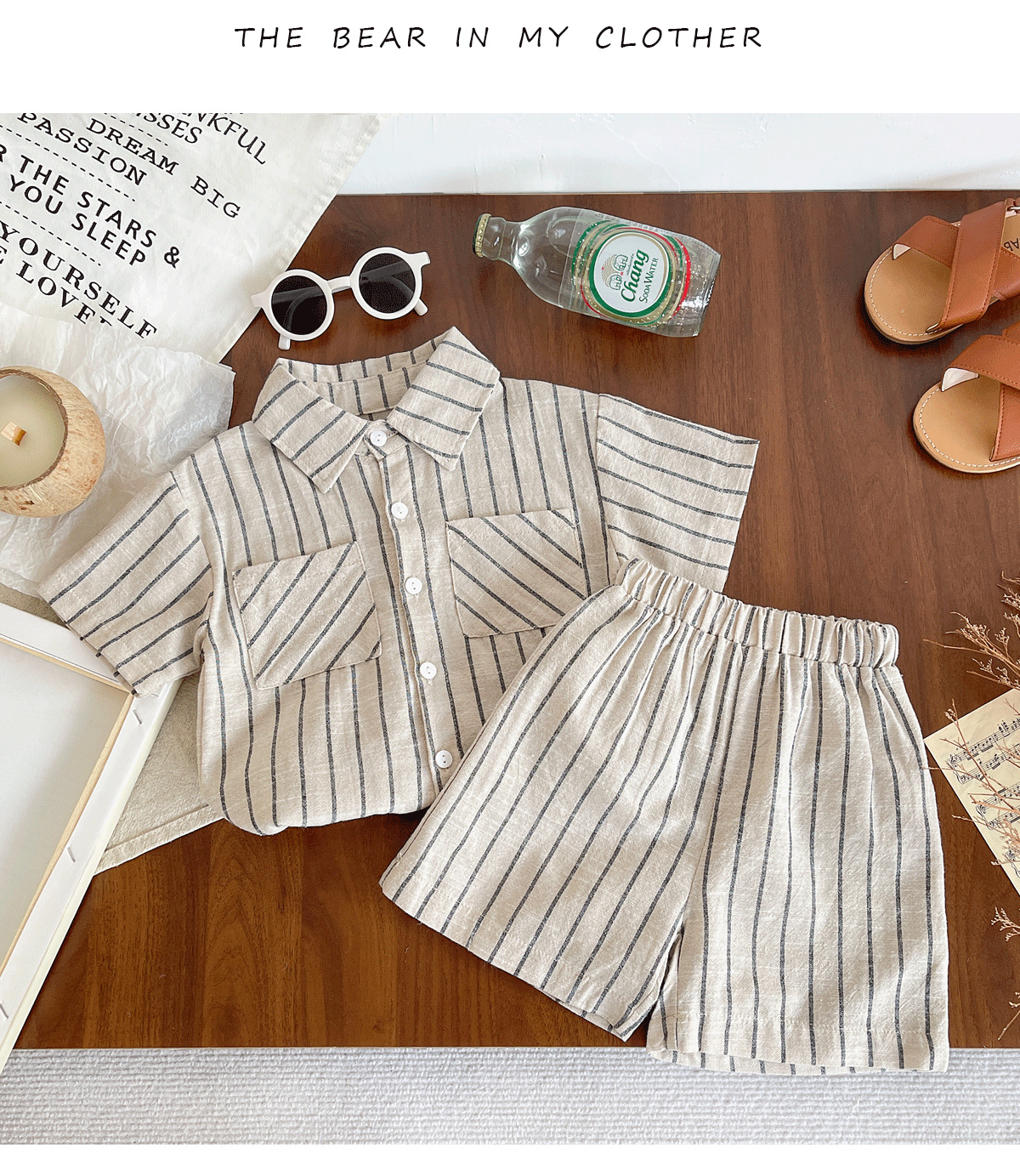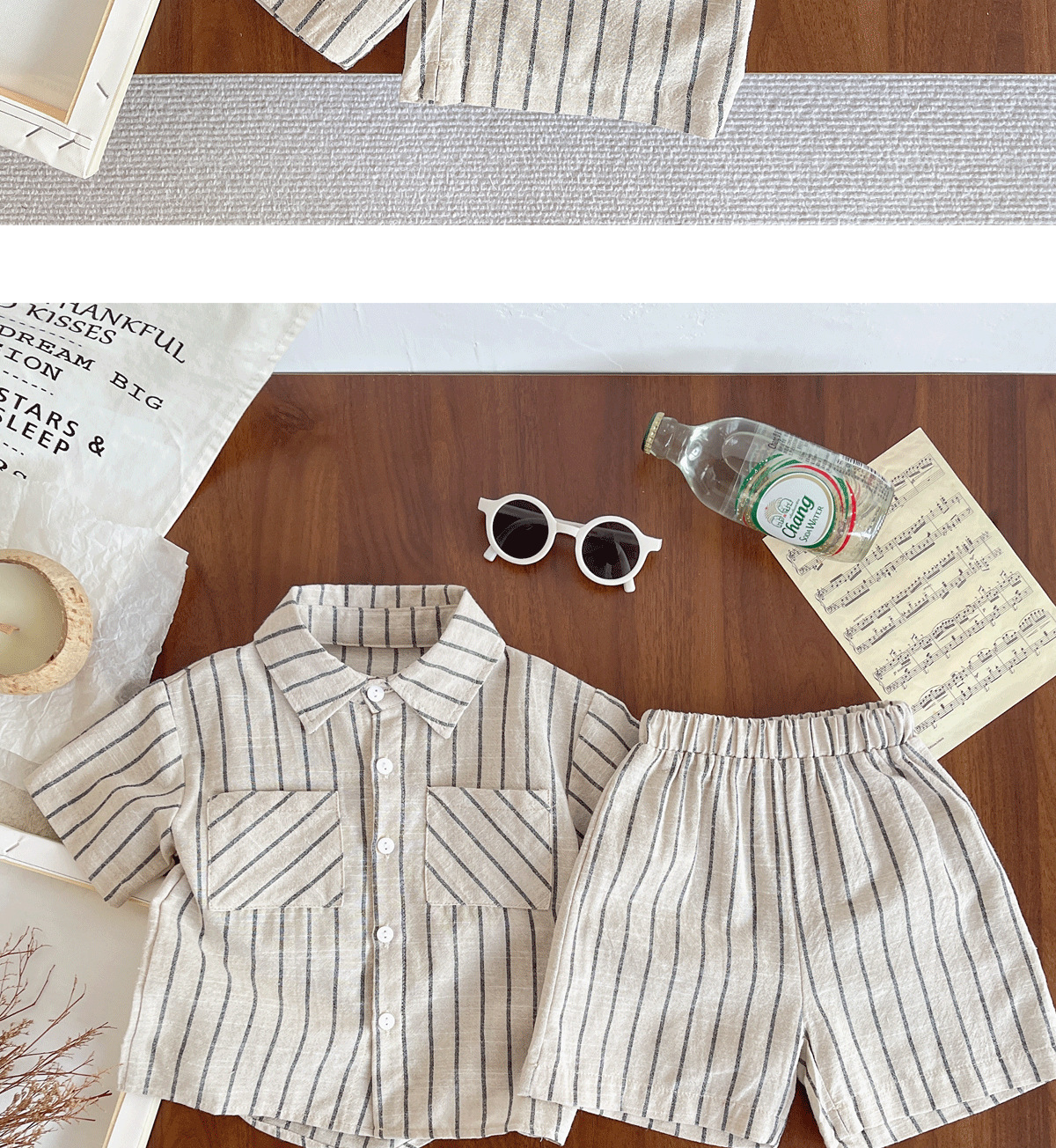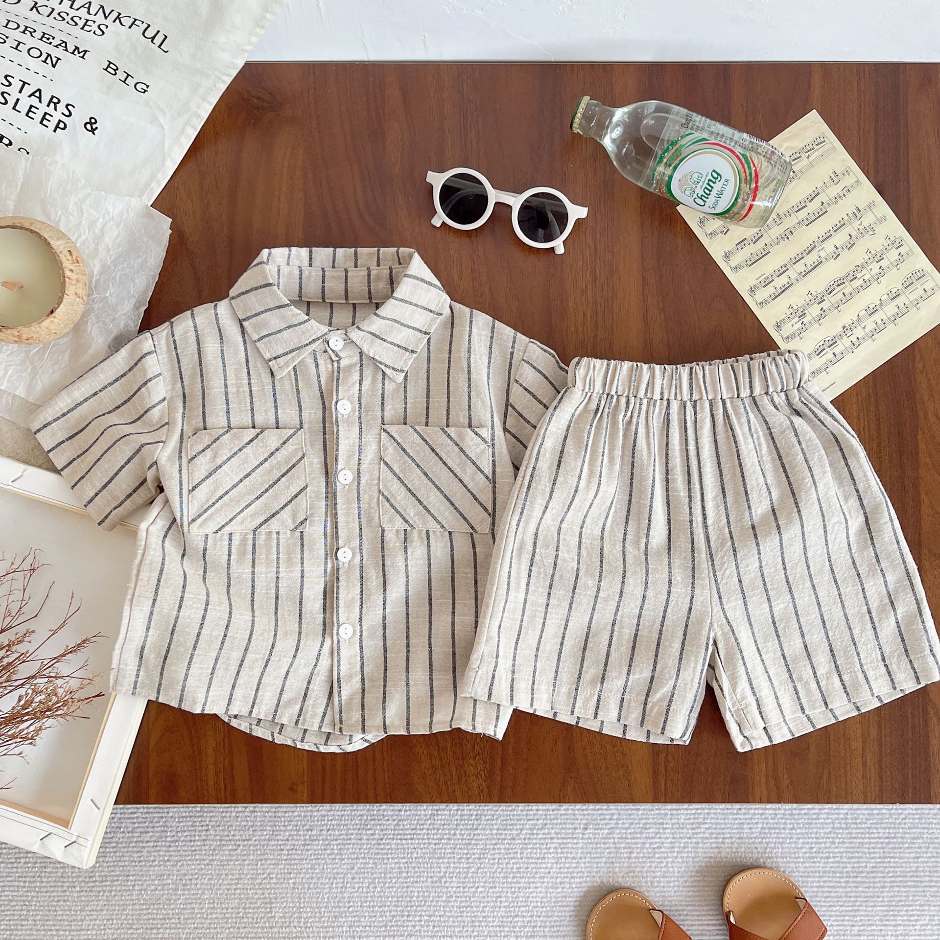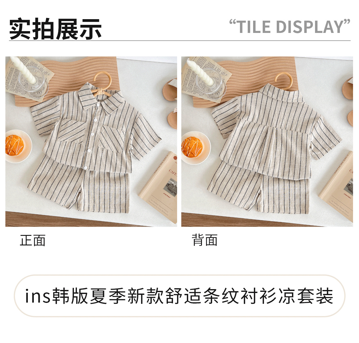 세트 한국식 Ins Baby와 유아복 올매치 스트라이프 편안한 여름 쿨 뉴 캐주얼 반팔 세트 코튼 투피스 세트스토어 가기